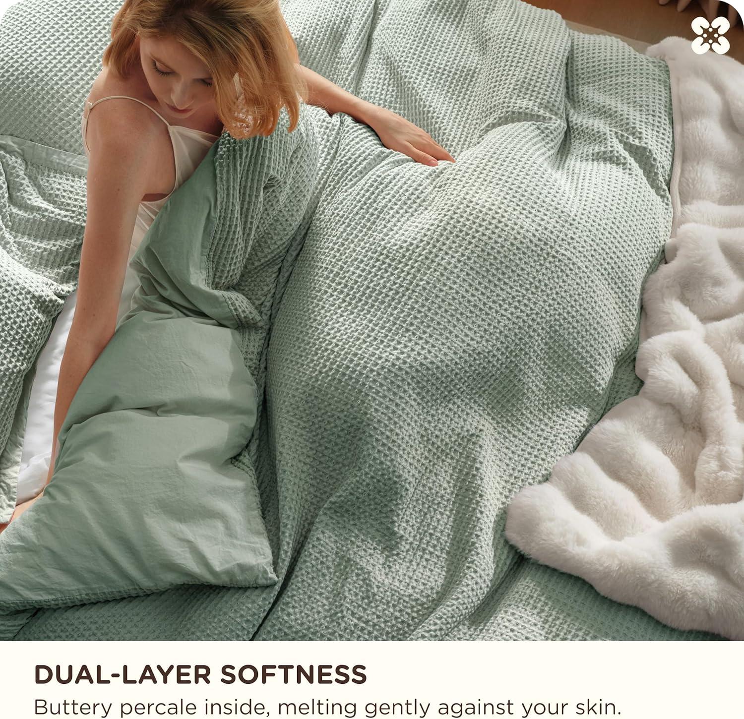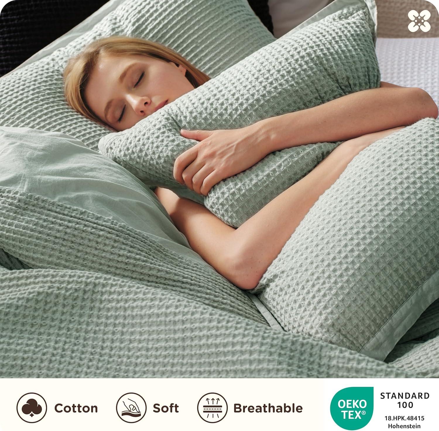 TIMELESS WAFFLE TEXTURE: Classic waffle weave creates dimensional texture that never goes out of style, offering enhanced breathability and natural elegance for any bedroom decor
