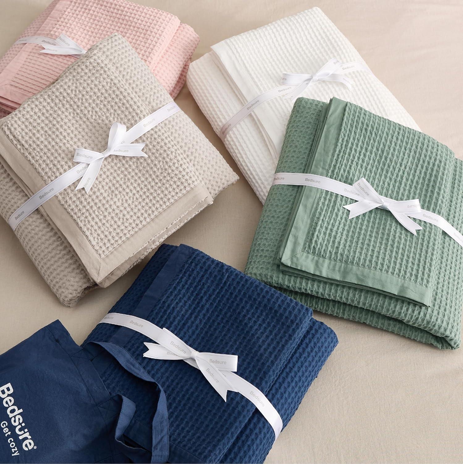 TIMELESS WAFFLE TEXTURE: Classic waffle weave creates dimensional texture that never goes out of style, offering enhanced breathability and natural elegance for any bedroom decor