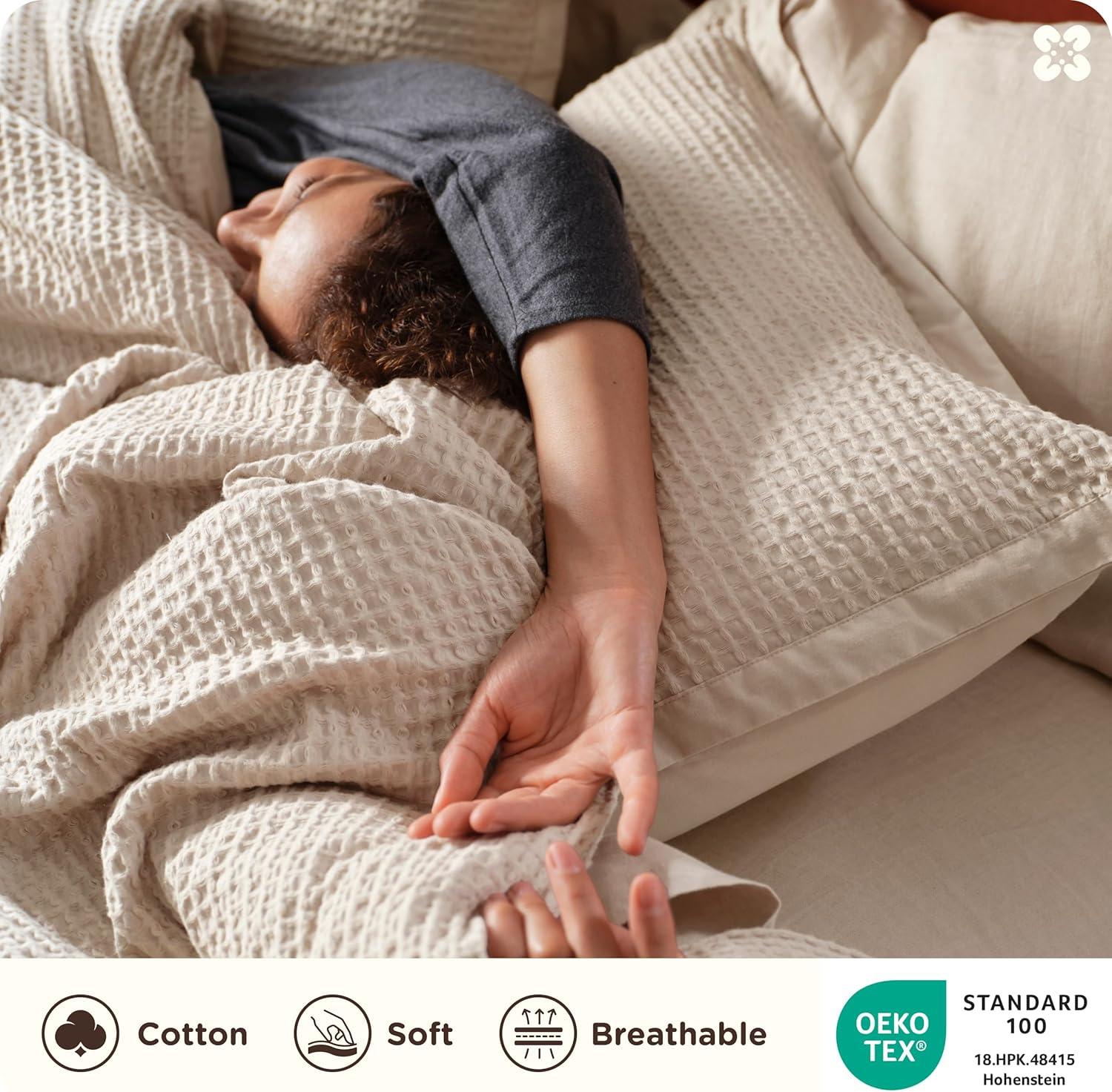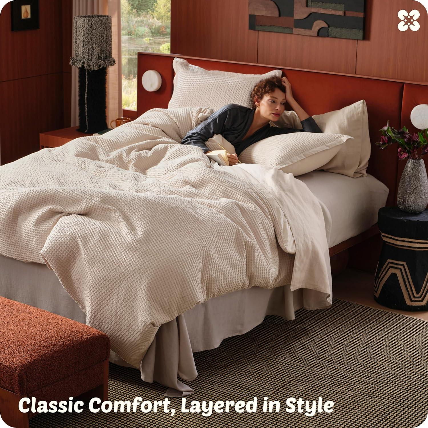 TIMELESS WAFFLE TEXTURE: Classic waffle weave creates dimensional texture that never goes out of style, offering enhanced breathability and natural elegance for any bedroom decor
