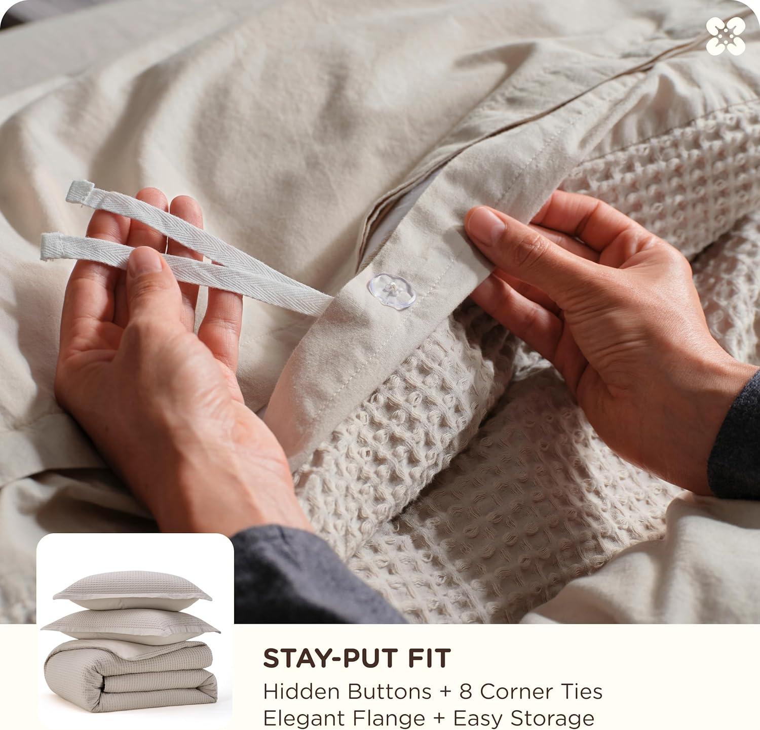 TIMELESS WAFFLE TEXTURE: Classic waffle weave creates dimensional texture that never goes out of style, offering enhanced breathability and natural elegance for any bedroom decor