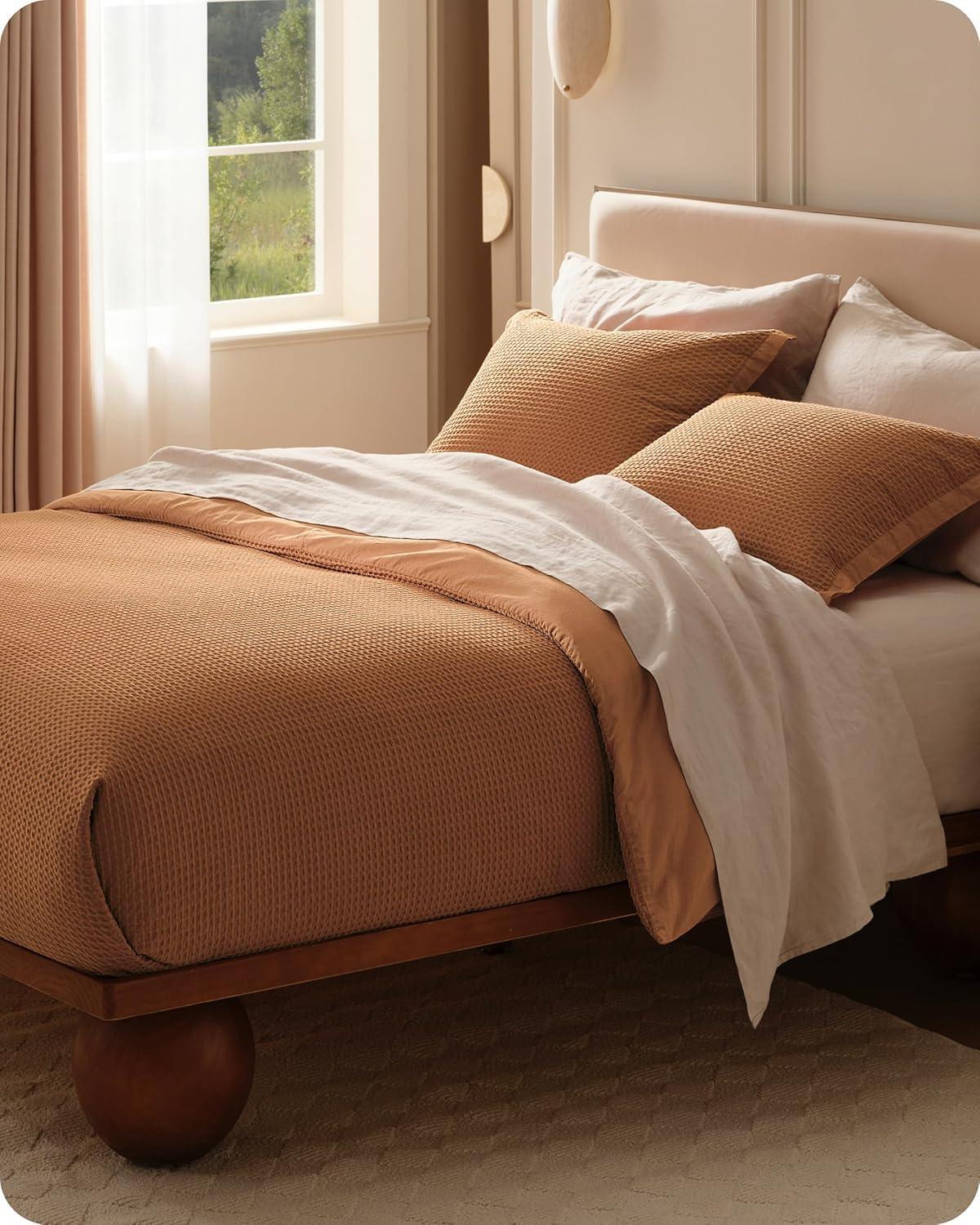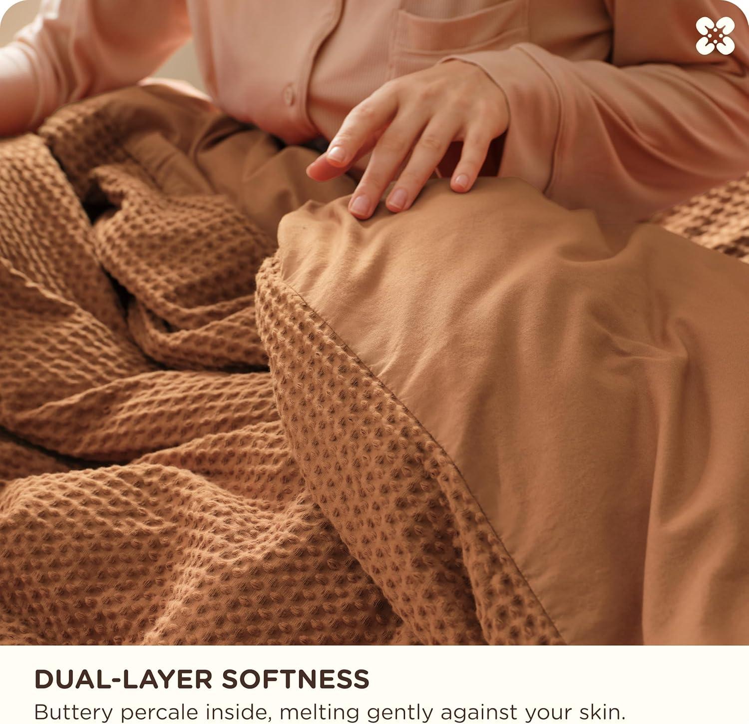 TIMELESS WAFFLE TEXTURE: Classic waffle weave creates dimensional texture that never goes out of style, offering enhanced breathability and natural elegance for any bedroom decor
