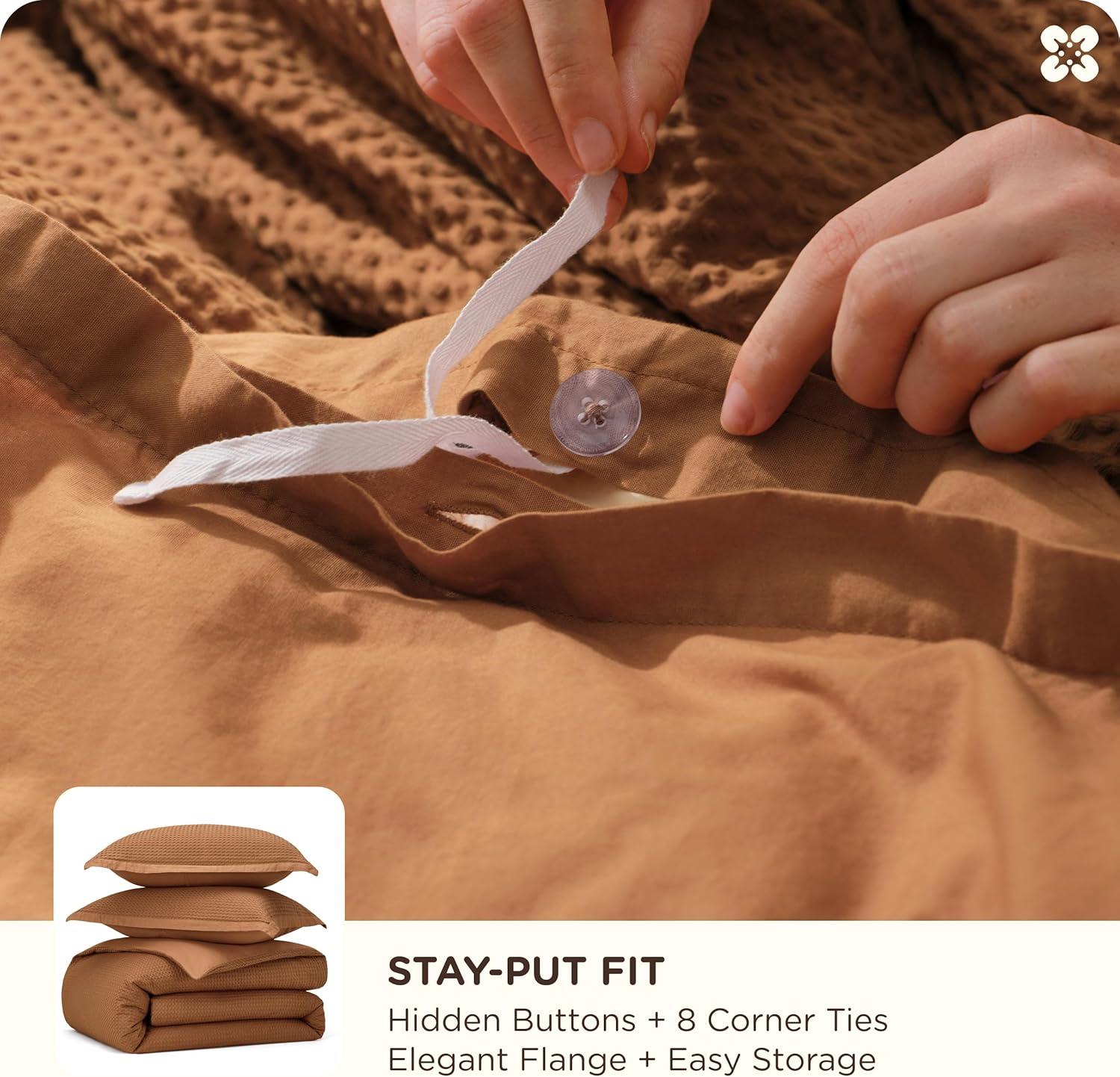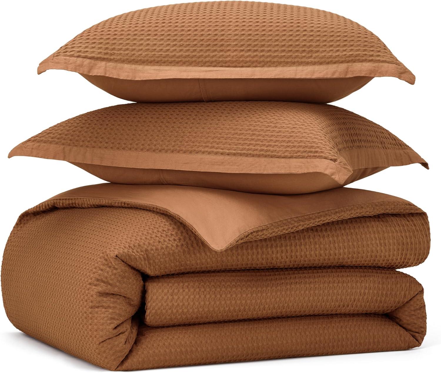 Bedsure 100% Cotton Duvet Cover Queen Size with Fitted Sheet – 4 Pieces Coconut White Waffle Weave Bedding Set, GentleSoft™ and Breathable, Includes 1 Duvet Cover 90×90, 1 Fitted Sheet, 2 Pillow Shams(07 – Burnt Orange (No Comforter))