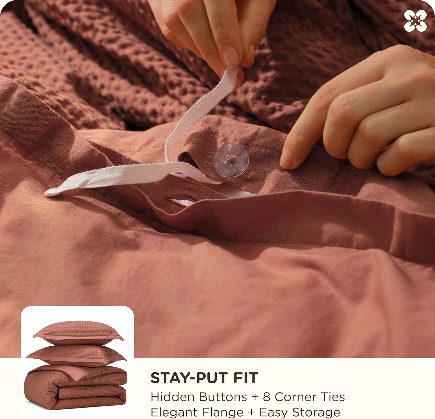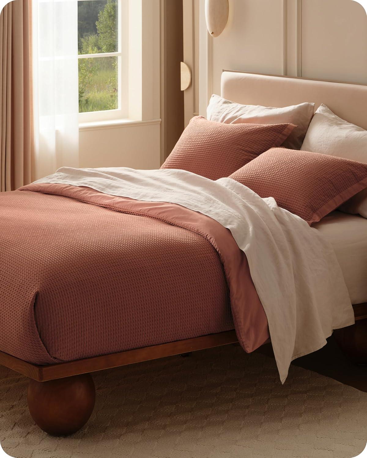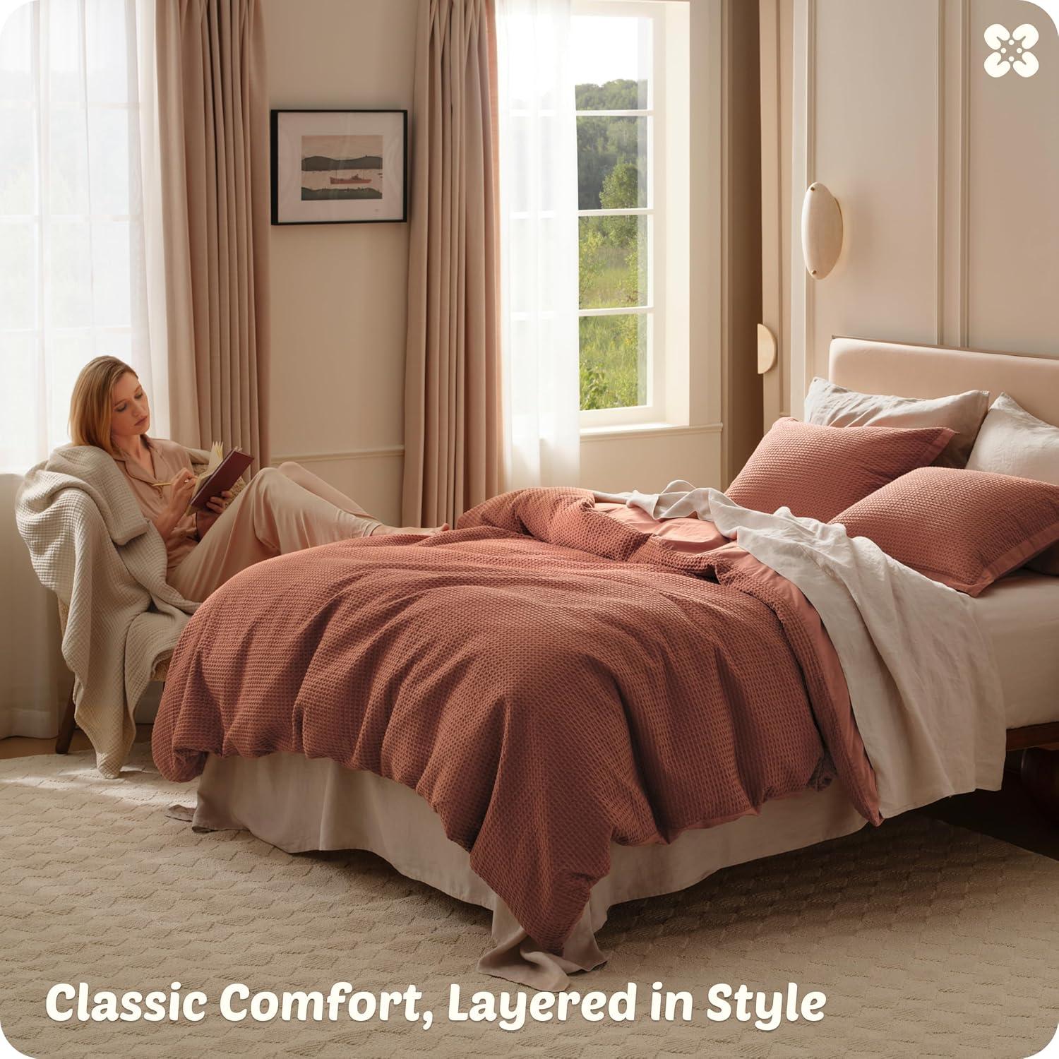 TIMELESS WAFFLE TEXTURE: Classic waffle weave creates dimensional texture that never goes out of style, offering enhanced breathability and natural elegance for any bedroom decor