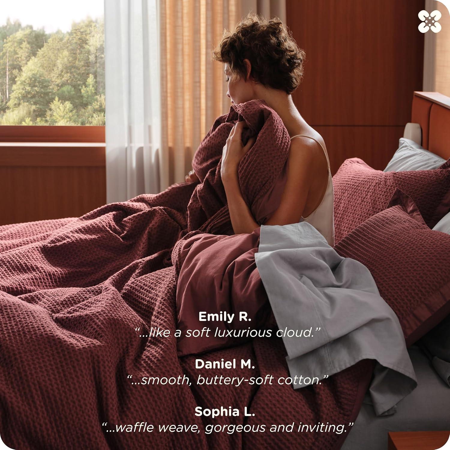 TIMELESS WAFFLE TEXTURE: Classic waffle weave creates dimensional texture that never goes out of style, offering enhanced breathability and natural elegance for any bedroom decor