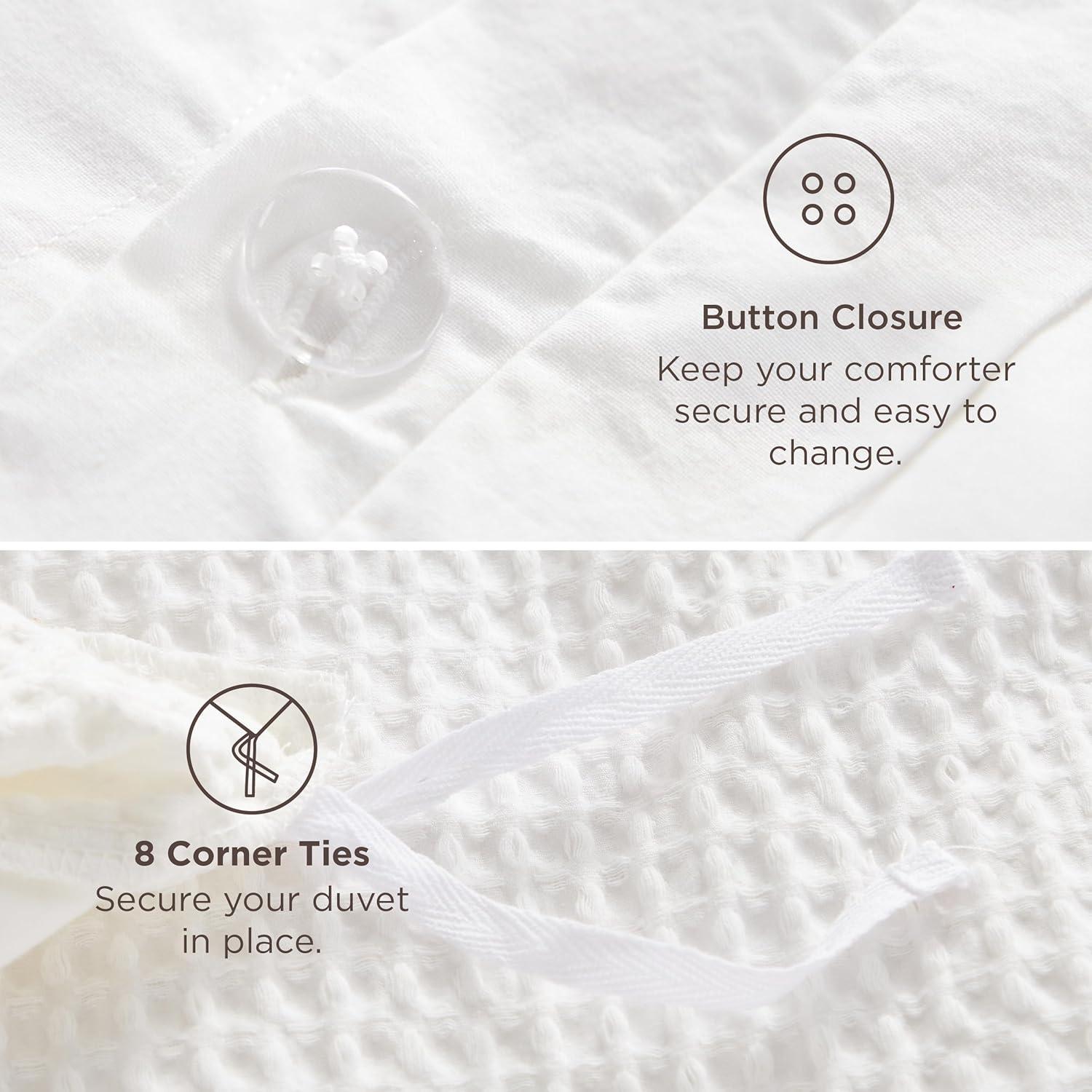 THOUGHTFUL DETAILS: Elegant button closure enriches your room décor while keeping the duvet secure, with 8 interior ties preventing your insert shifting