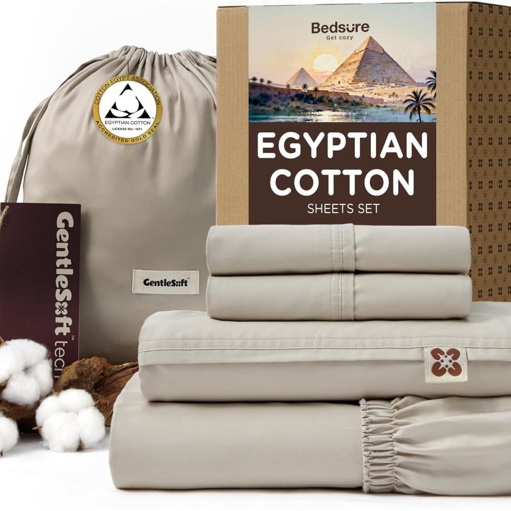 What's Included: This Egyptian cotton sheets king size set comes with 1 flat sheet (108″ x 102″), 1 fitted sheet (78″ x 80″) and 2 pillowcases (20″ x 40″). Thoughtfully presented in a reusable and plastic-free drawstring bag, perfect for refined gifting or elegant storage