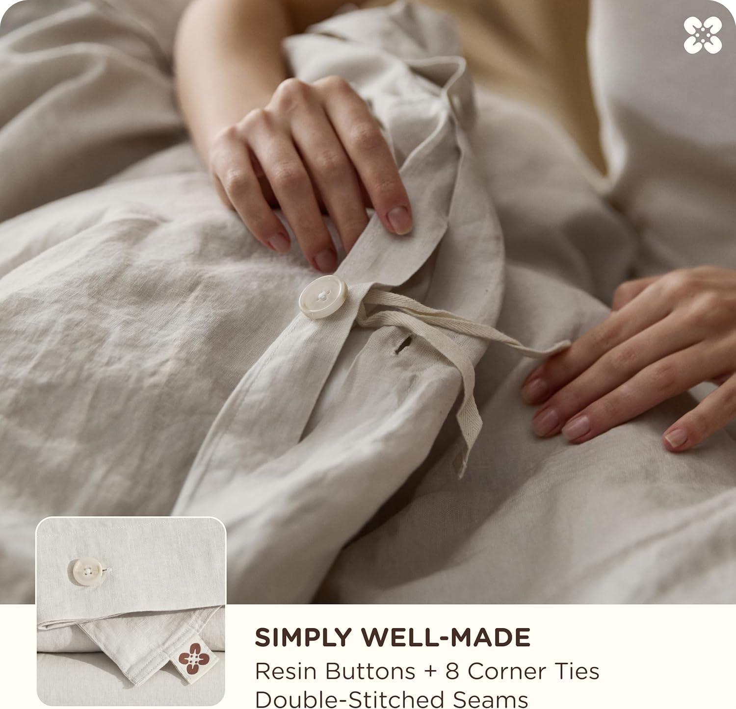 Stay-Put Design: 8 interior ties keep your comforter securely in place—no bunching or shifting. The European Flax-Linen duvet cover and shams feature exquisite double stitching and natural resin button closures for a refined, organic look and feel (a spare button is included). It's the little details that define true luxury
