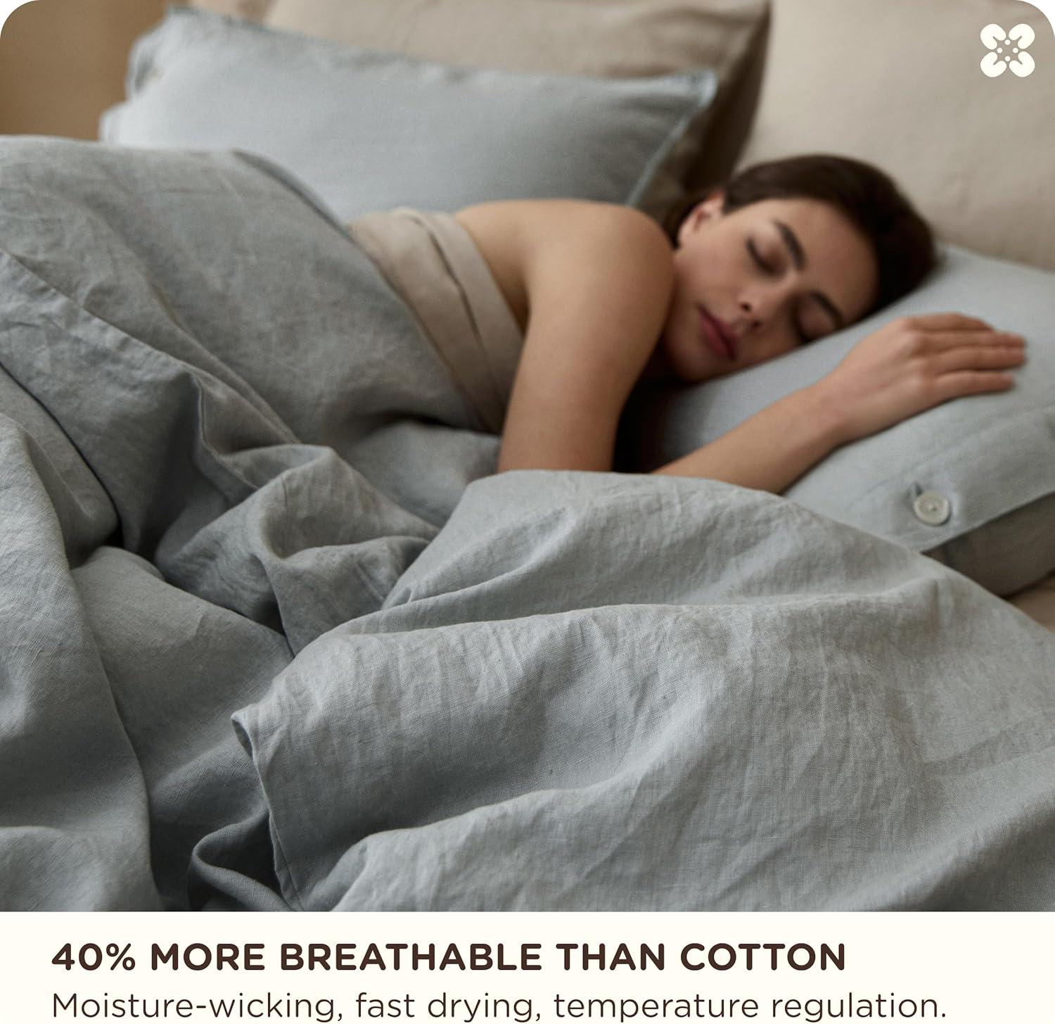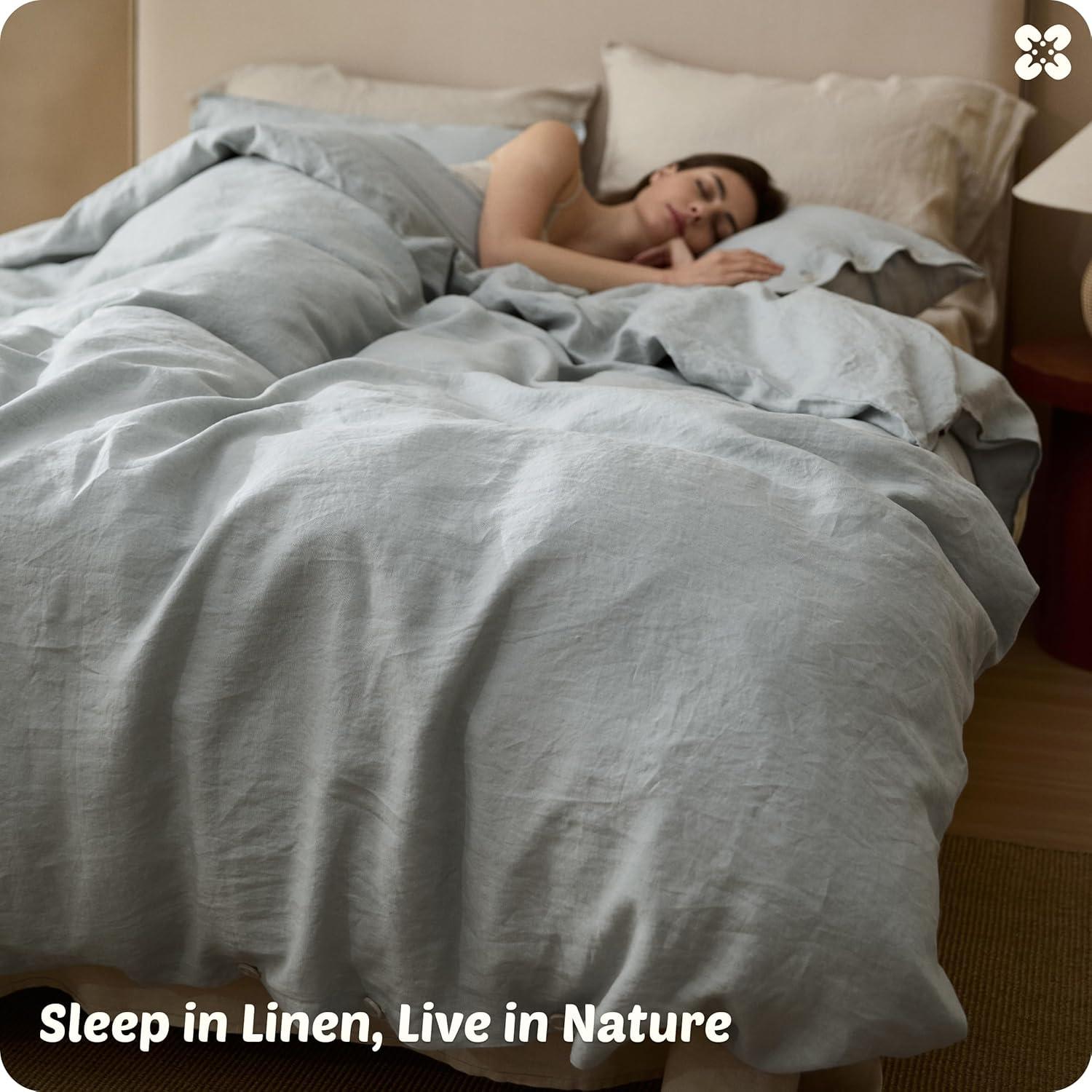 100% European Linen, Authentically: Woven from 100% European Flax certified linen, this European Flax-Linen duvet cover is OEKO-TEX certified (BEHO 078808) for skin safety. Breathable and moisture-wicking, linen bedding regulates temperature season after season, keeping you cozy and dry all night without that sticky feeling. Made for hot sleepers seeking cool comfort. A smart investment in truly restorative sleep