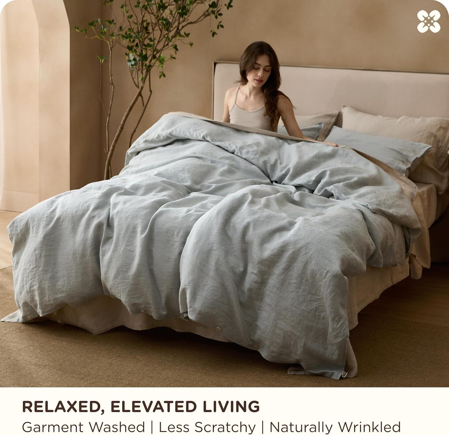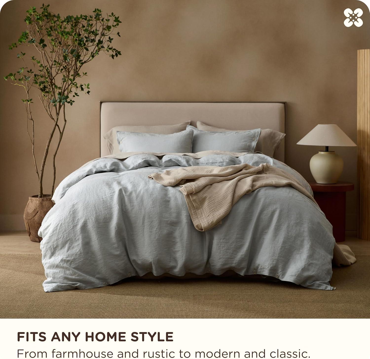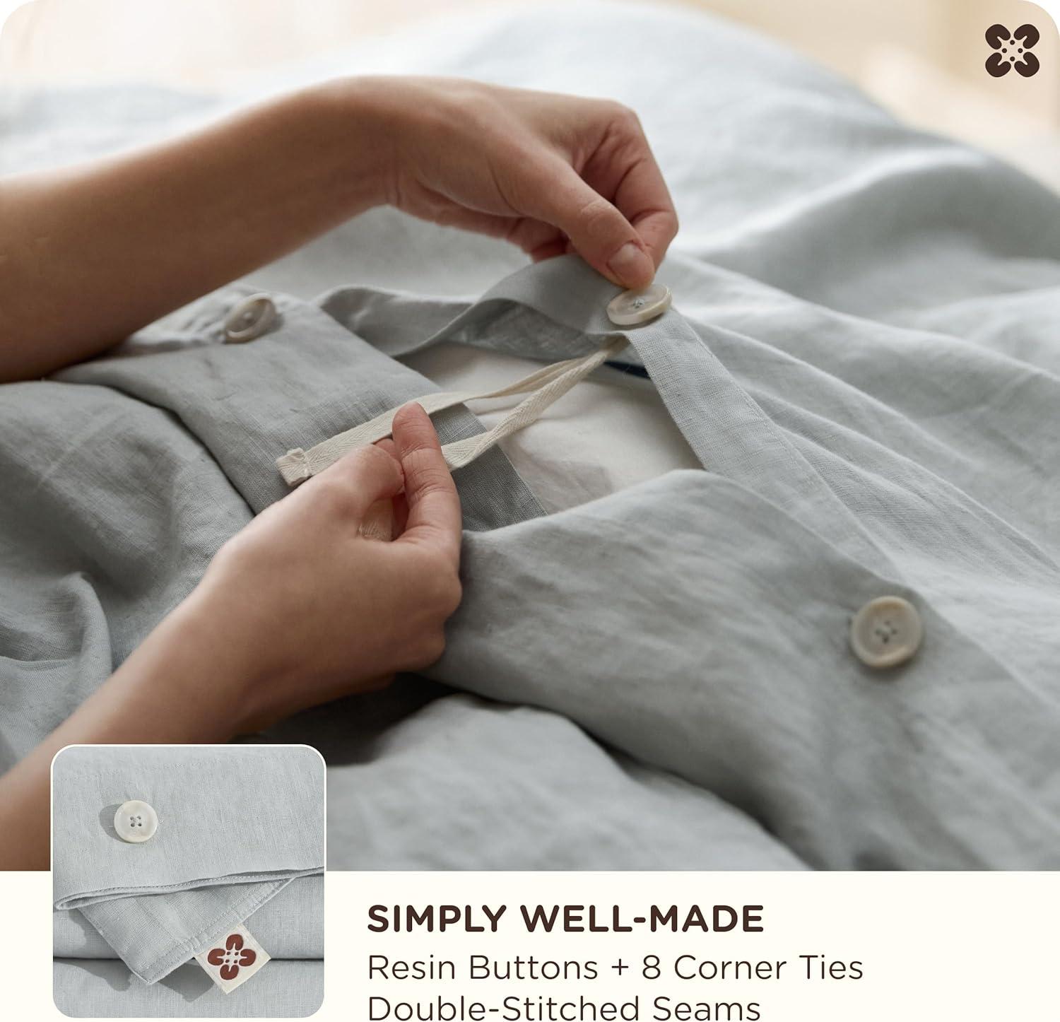 Stay-Put Design: 8 interior ties keep your comforter securely in place—no bunching or shifting. The European Flax-Linen duvet cover and shams feature exquisite double stitching and natural resin button closures for a refined, organic look and feel (a spare button is included). It's the little details that define true luxury