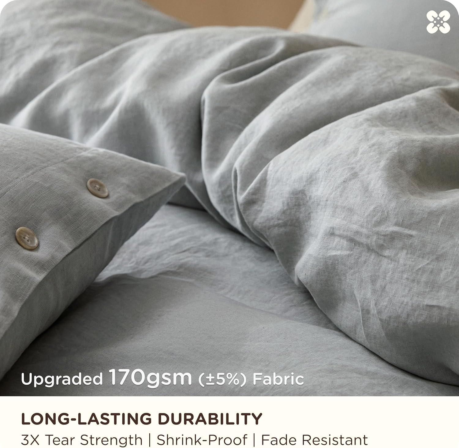 Built to Last, Heirloom Quality: 170gsm (±5%) fabric weight signifies premium, long-lasting quality that withstands daily life. Each piece of this linen duvet cover king is garment washed and pre-shrunk to enhance softness, eliminate the scratchiness of raw linen, and ensure your linen bedding maintains its perfect shape and size without further shrinkage or warping