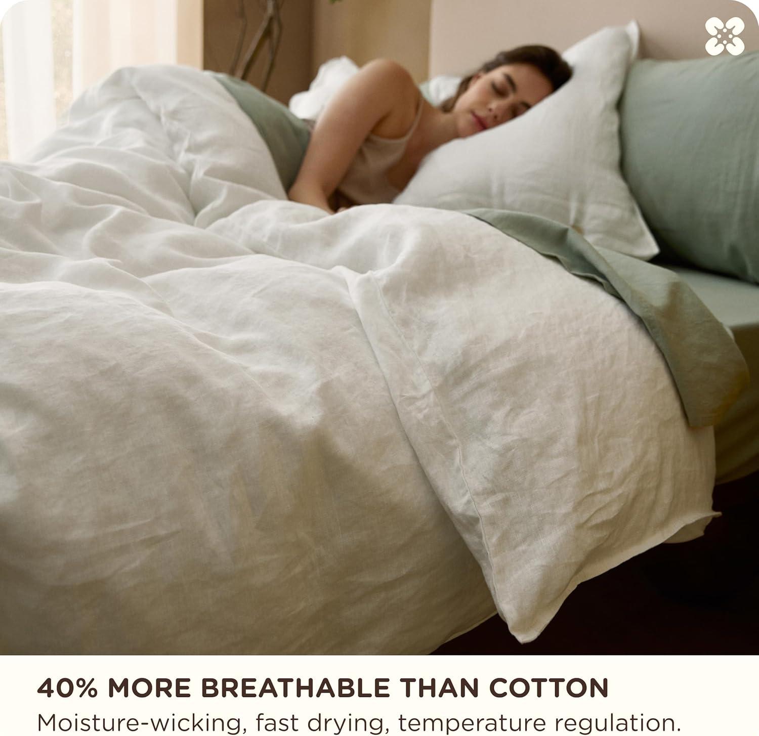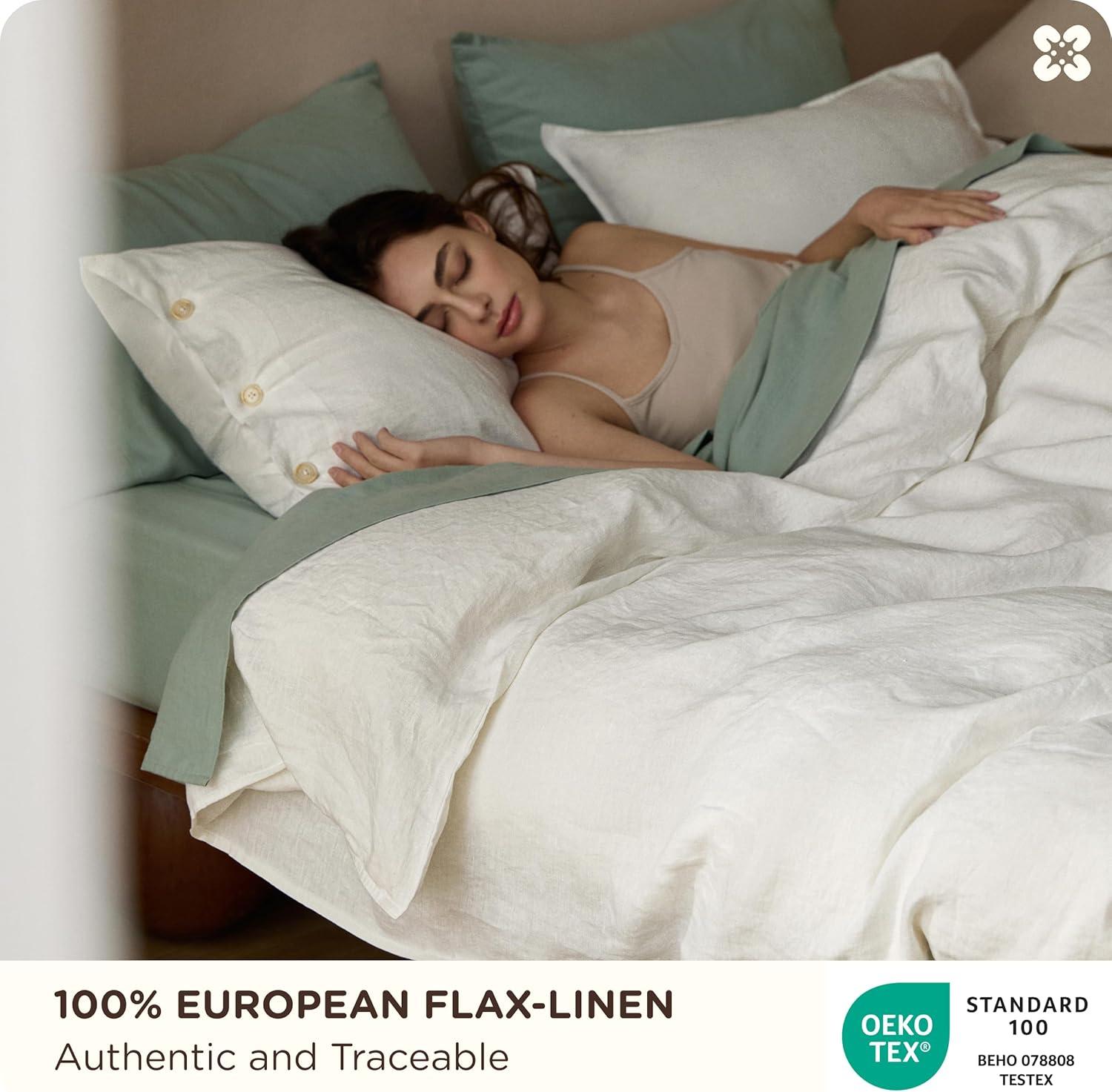 100% European Linen, Authentically: Woven from 100% European Flax certified linen, this European Flax-Linen duvet cover is OEKO-TEX certified (BEHO 078808) for skin safety. Breathable and moisture-wicking, linen bedding regulates temperature season after season, keeping you cozy and dry all night without that sticky feeling. Made for hot sleepers seeking cool comfort. A smart investment in truly restorative sleep