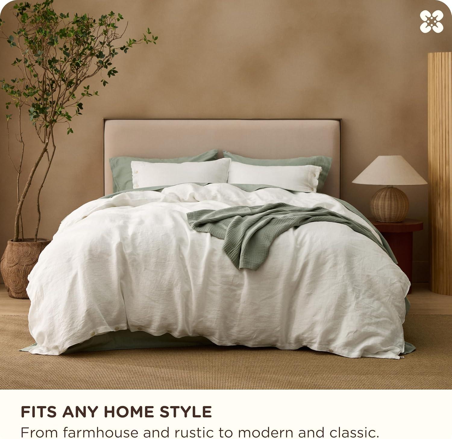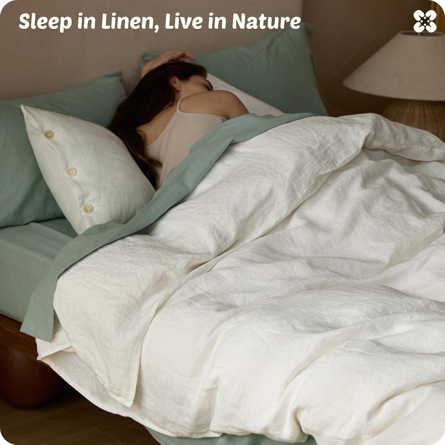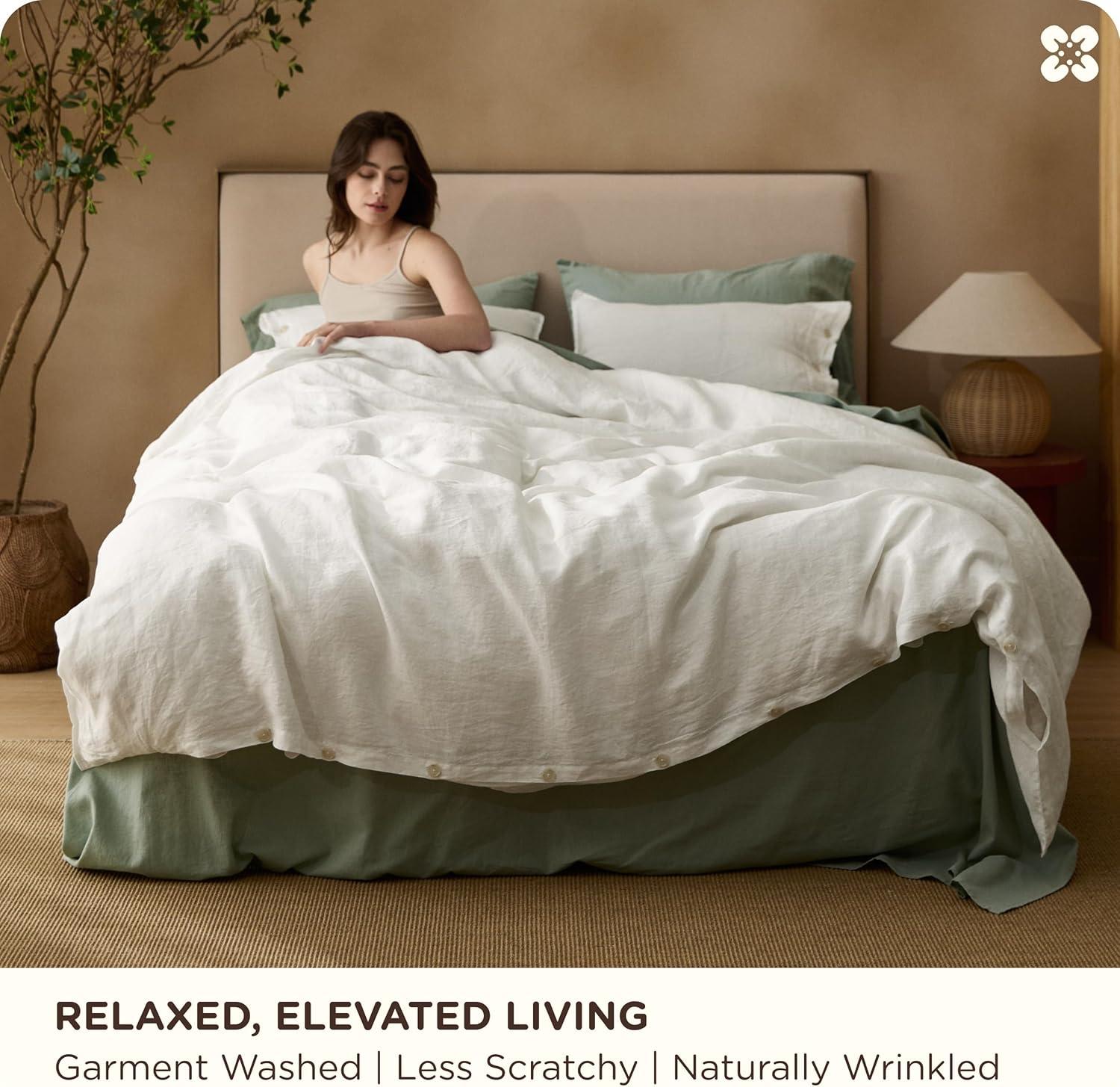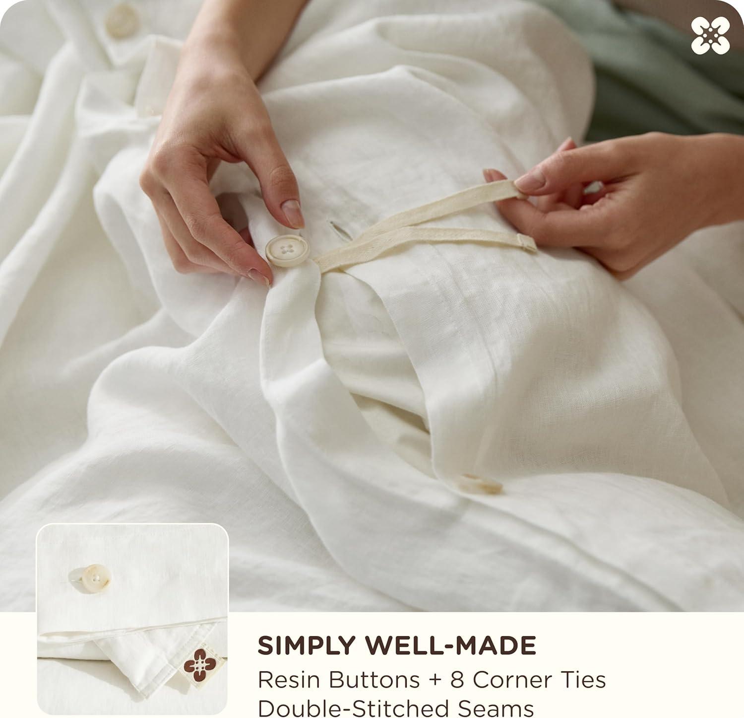 Stay-Put Design: 8 interior ties keep your comforter securely in place—no bunching or shifting. The European Flax-Linen duvet cover and shams feature exquisite double stitching and natural resin button closures for a refined, organic look and feel (a spare button is included). It's the little details that define true luxury