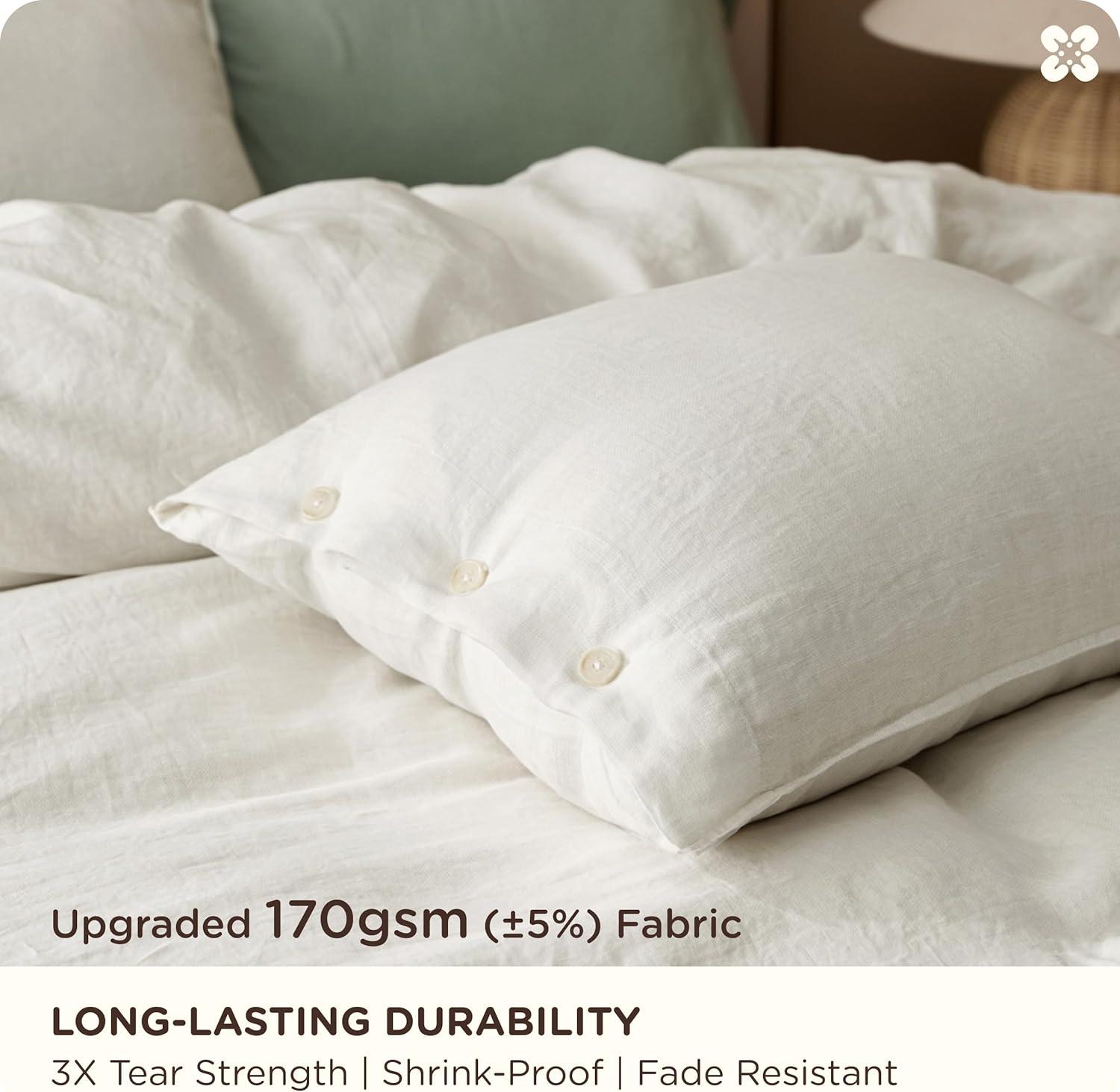 Built to Last, Heirloom Quality: 170gsm (±5%) fabric weight signifies premium, long-lasting quality that withstands daily life. Each piece of this linen duvet cover king is garment washed and pre-shrunk to enhance softness, eliminate the scratchiness of raw linen, and ensure your linen bedding maintains its perfect shape and size without further shrinkage or warping