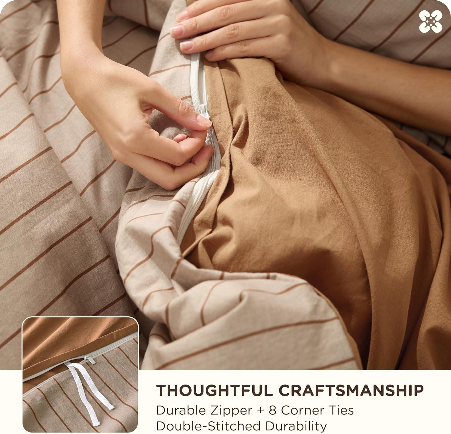 imageBedsure 100 Washed Cotton Duvet Cover Queen Size Classic Striped Duvet Cover Set Enhances Bedroom Comfort and Style GentleSoft and Breathable Bedding Set Stripes TanWhite 90quotx90quot02 Stripes  CamelBrown No Comforter