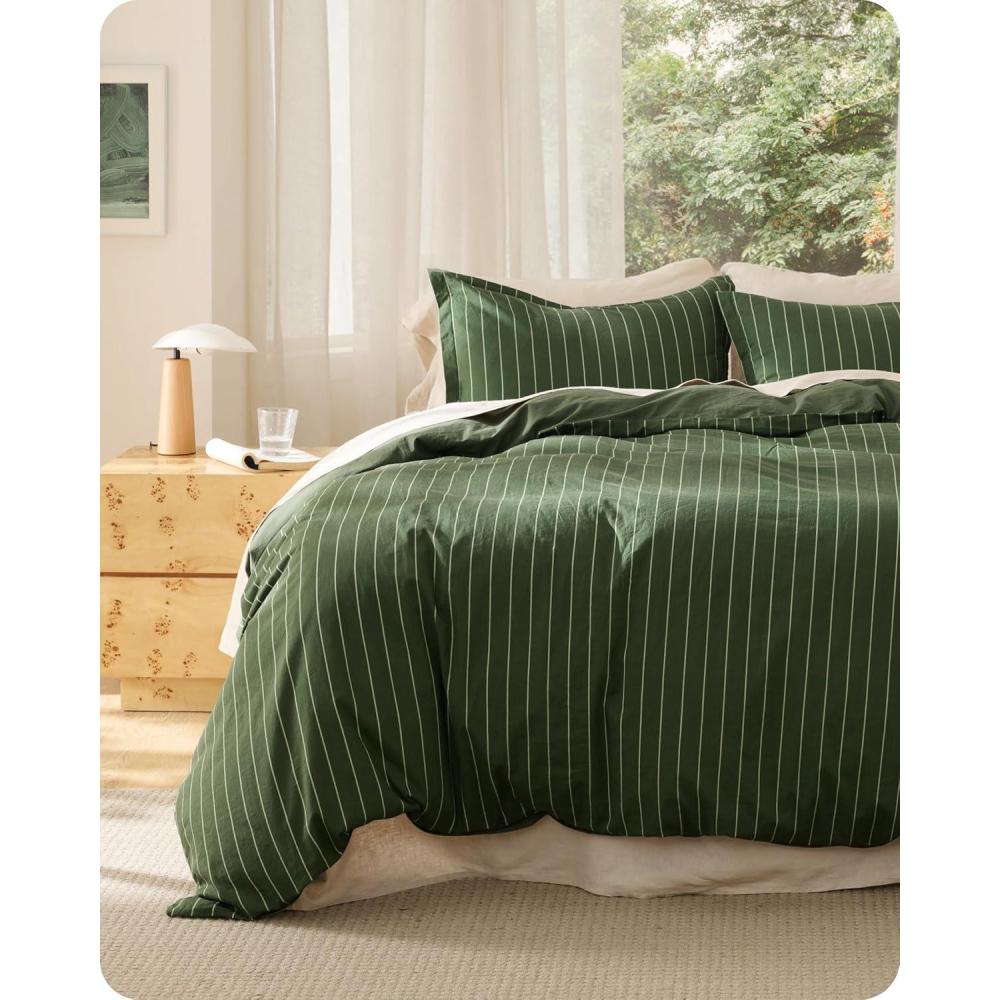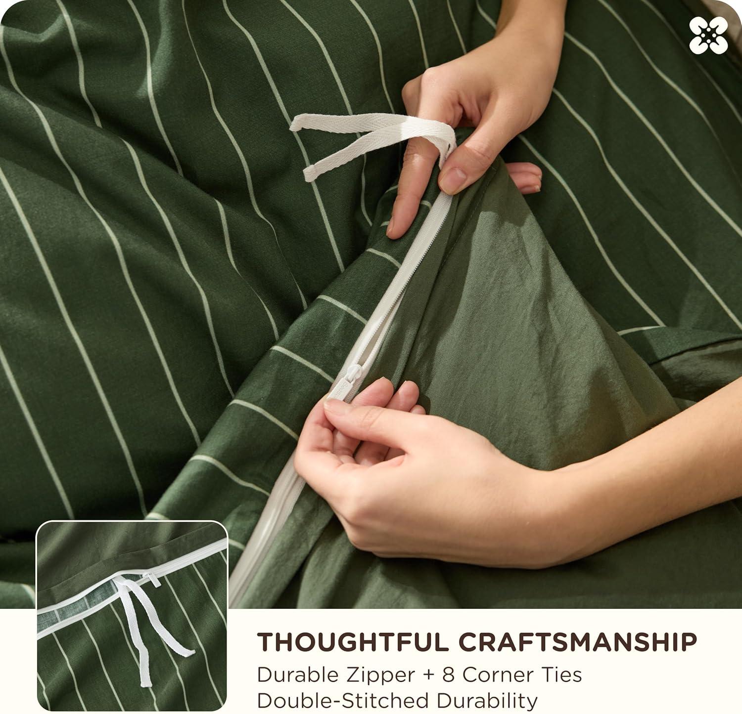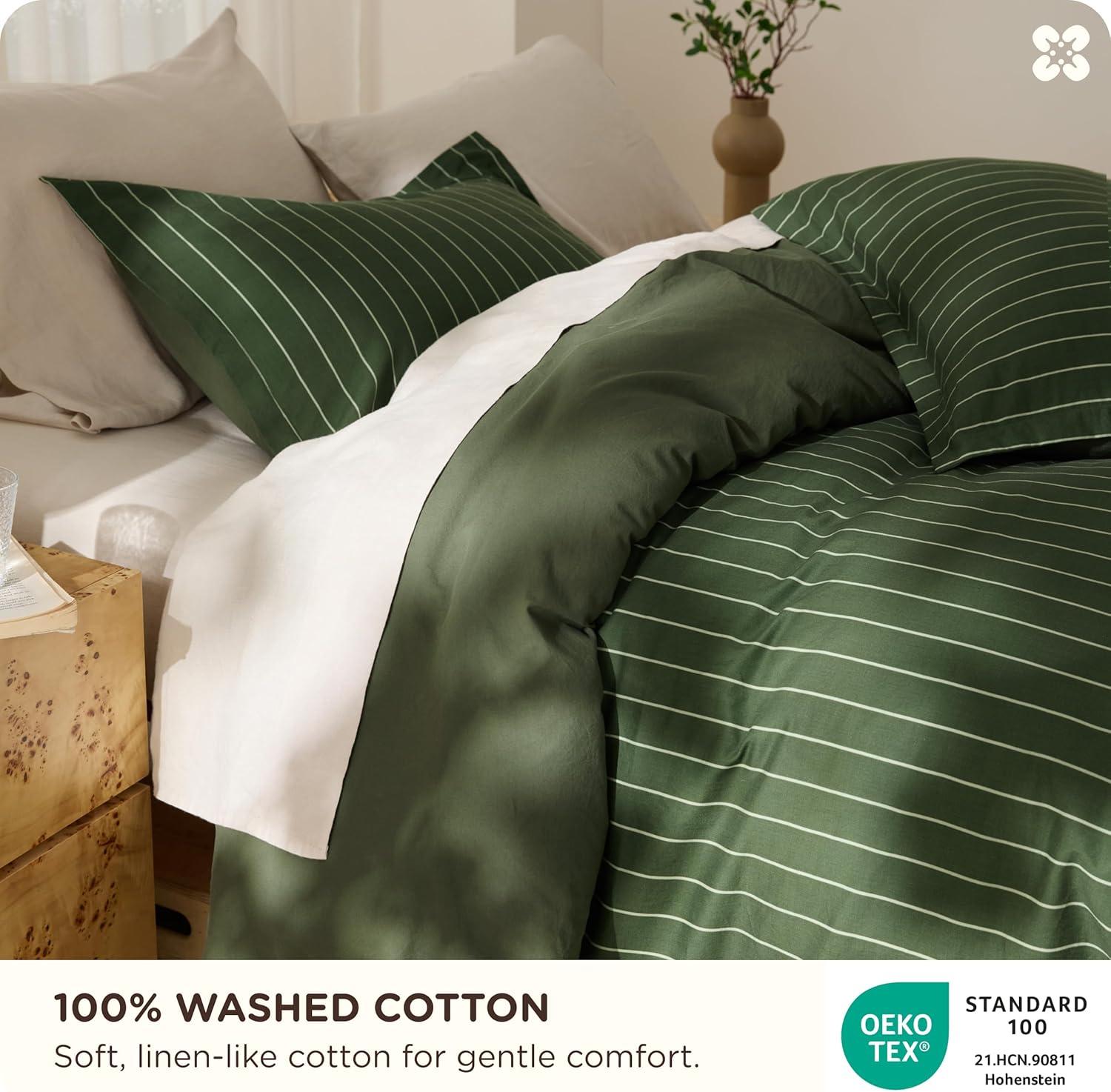 imageBedsure 100 Washed Cotton Duvet Cover Queen Size Classic Striped Duvet Cover Set Enhances Bedroom Comfort and Style GentleSoft and Breathable Bedding Set Stripes TanWhite 90quotx90quot03  Stripes  Olive Green No Comforter