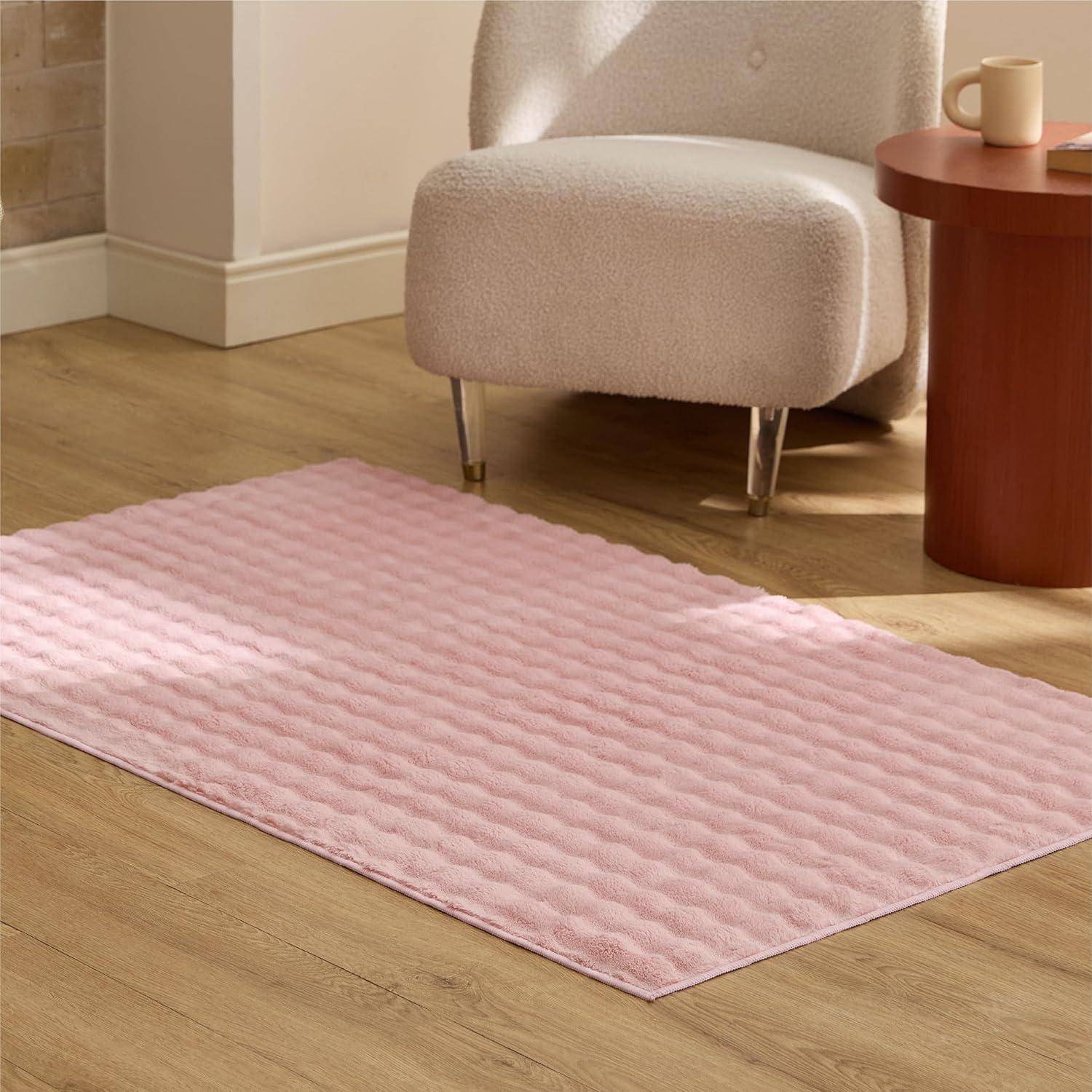 imageBedsure 5x7 Faux Wool Area Rugs for Living Room Machine Washable Carpet NonSlip Backing Pet Friendly Throw Rug for Bedroom Dining Room Gray03  Strawberry Cream