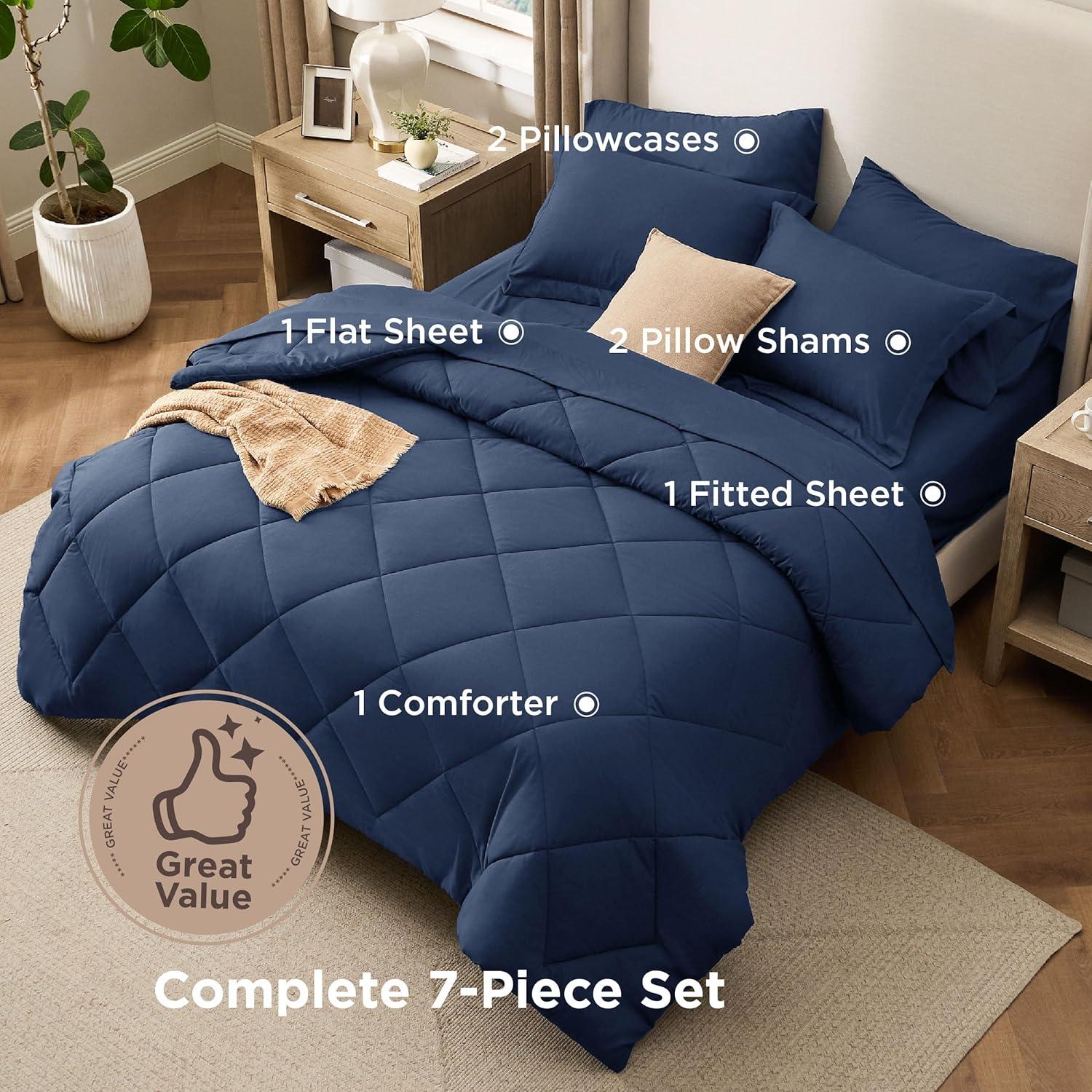 Bedsure 7 Pieces Queen Comforter Set Premium Series, Hotel Luxury Soft Bed in a Bag, Goose Down Alternative, Safe for Sensitive Skin Bedding Comforter All Season Medium Warmth, Navy Blue Queen Size,(02 - Navy Blue)