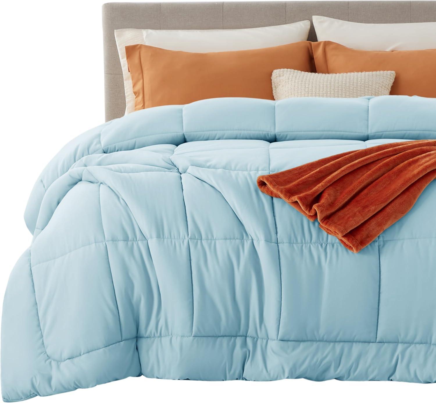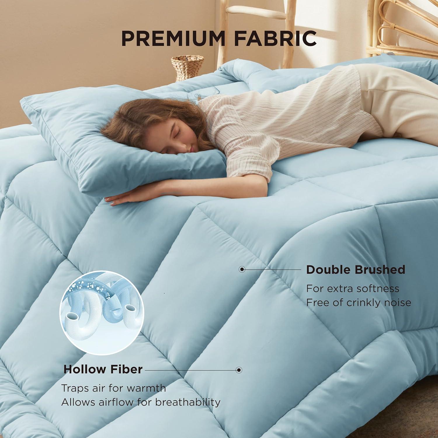 Bedsure Comforter Duvet Insert – Quilted Comforters Queen Size, All Season Duvet, GentleSoft Down Alternative Bedding, with 8 Tabs, Gifts for Women/Men, White, Queen 88 x 88 Inches(Light Spa Blue)