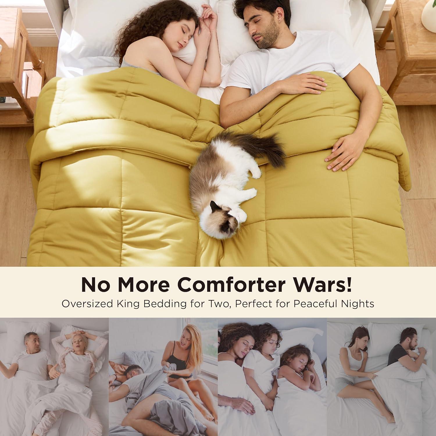 Bedsure Comforter Duvet Insert – Quilted Comforters Queen Size, All Season Duvet, GentleSoft Down Alternative Bedding, with 8 Tabs, Gifts for Women/Men, White, Queen 88 x 88 Inches(Mustard Yellow)