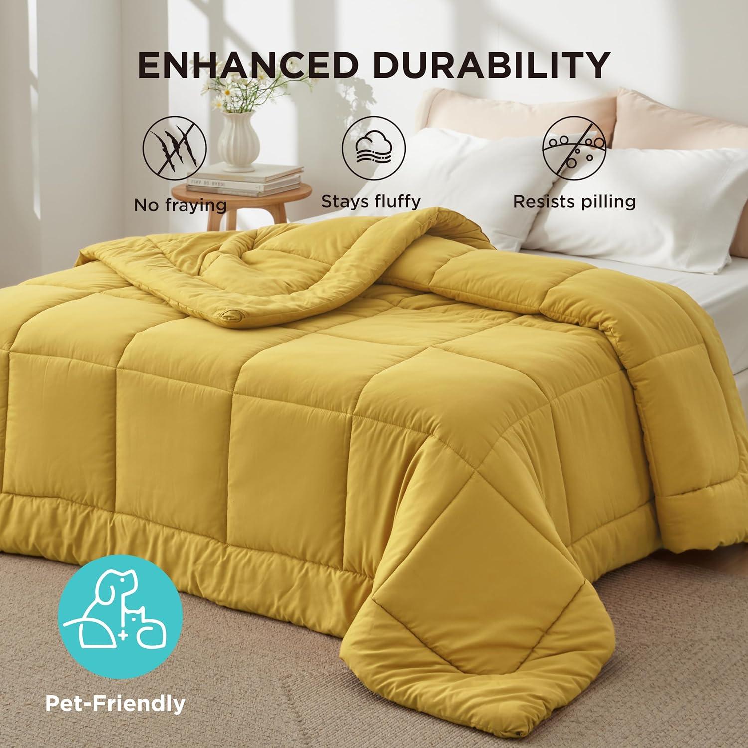 Bedsure Comforter Duvet Insert - Quilted Comforters Queen Size, All Season Duvet, GentleSoft Down Alternative Bedding, with 8 Tabs, Gifts for Women/Men, White, Queen 88 x 88 Inches(Mustard Yellow)