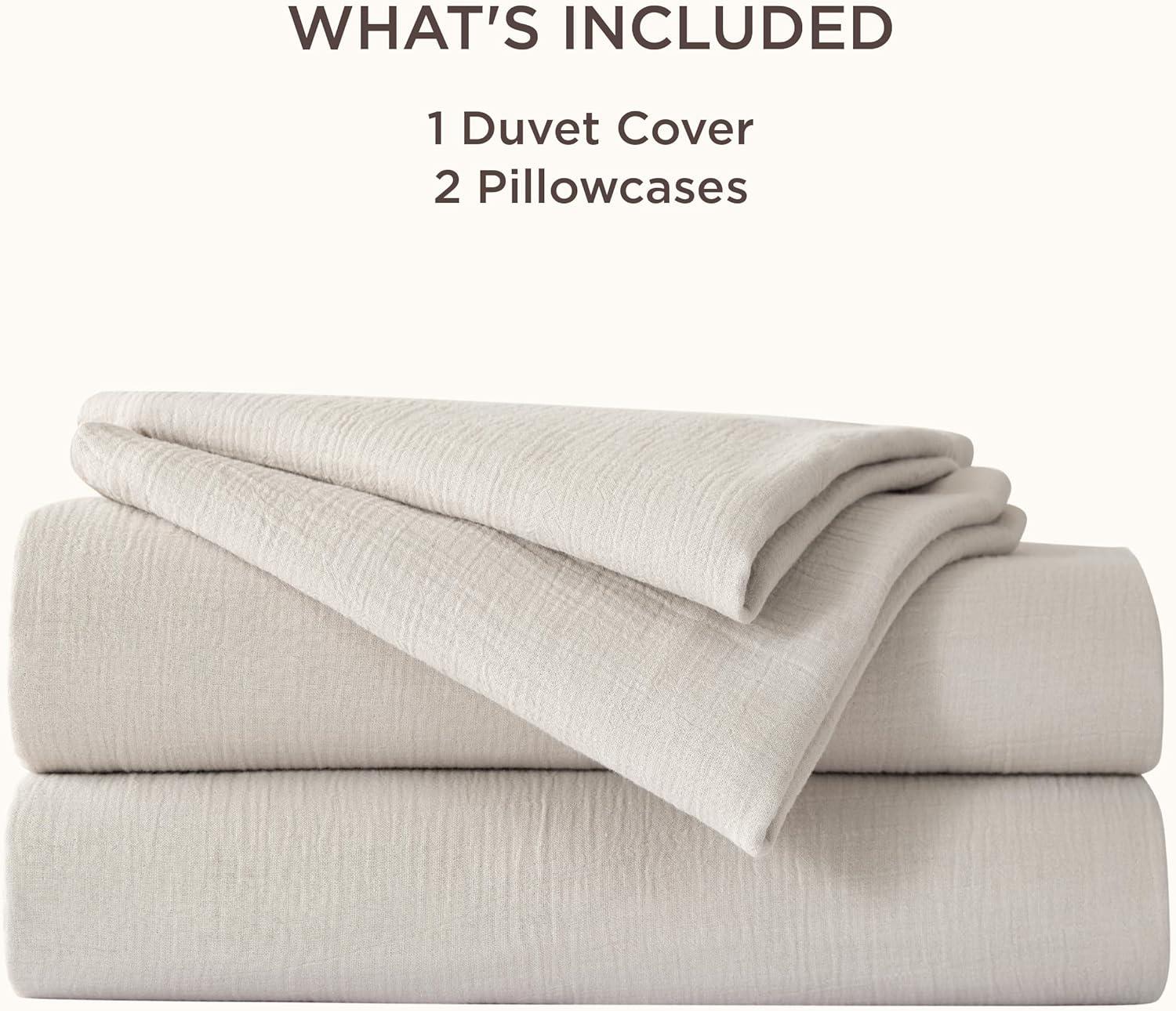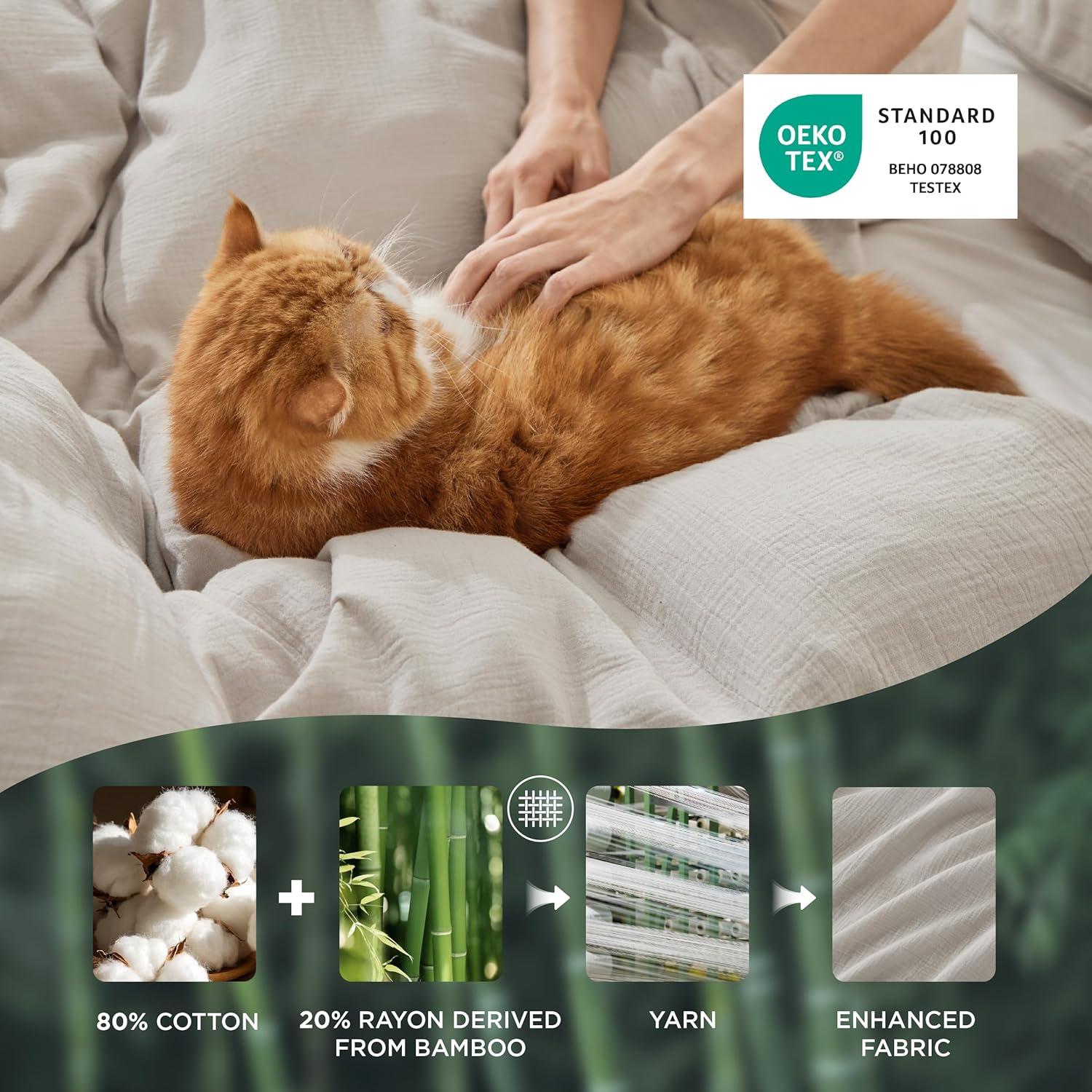 DOUBLE SOFTNESS: Experience gentle softness of our muslin duvet cover, crafted from a perfect blend of 80% cotton and 20% rayon derived from bamboo. OEKO-TEX certified and gentle on your skin, it offers a truly luxurious feel