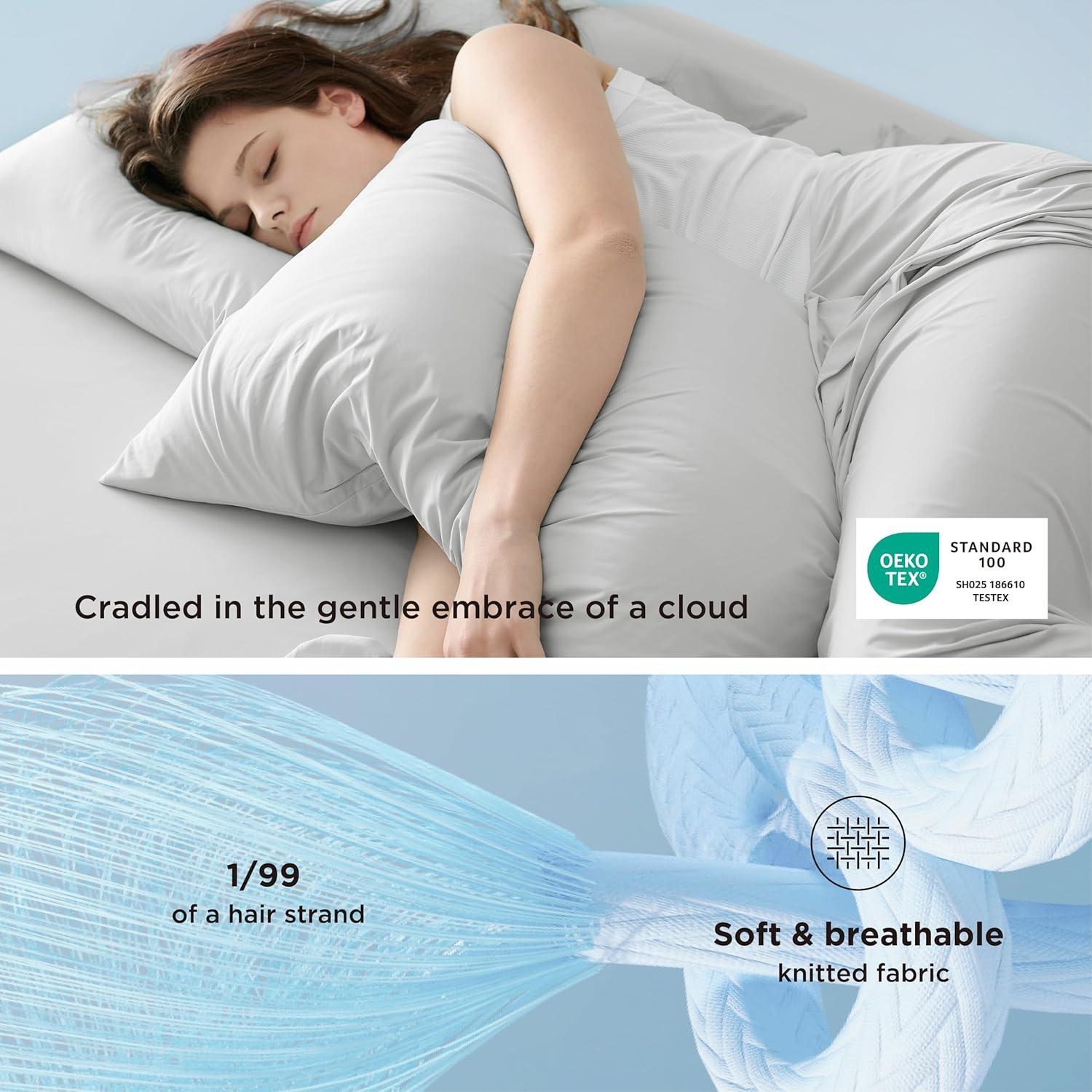 imageBedsure Cooling Sheets Queen Size Cooling Bed Sheets for Hot Sleepers Chill Cool Sheet Deep Pocket Up to 18 Inches Soft amp Breathable Queen Sheet Set 4 Pieces White01  Grey