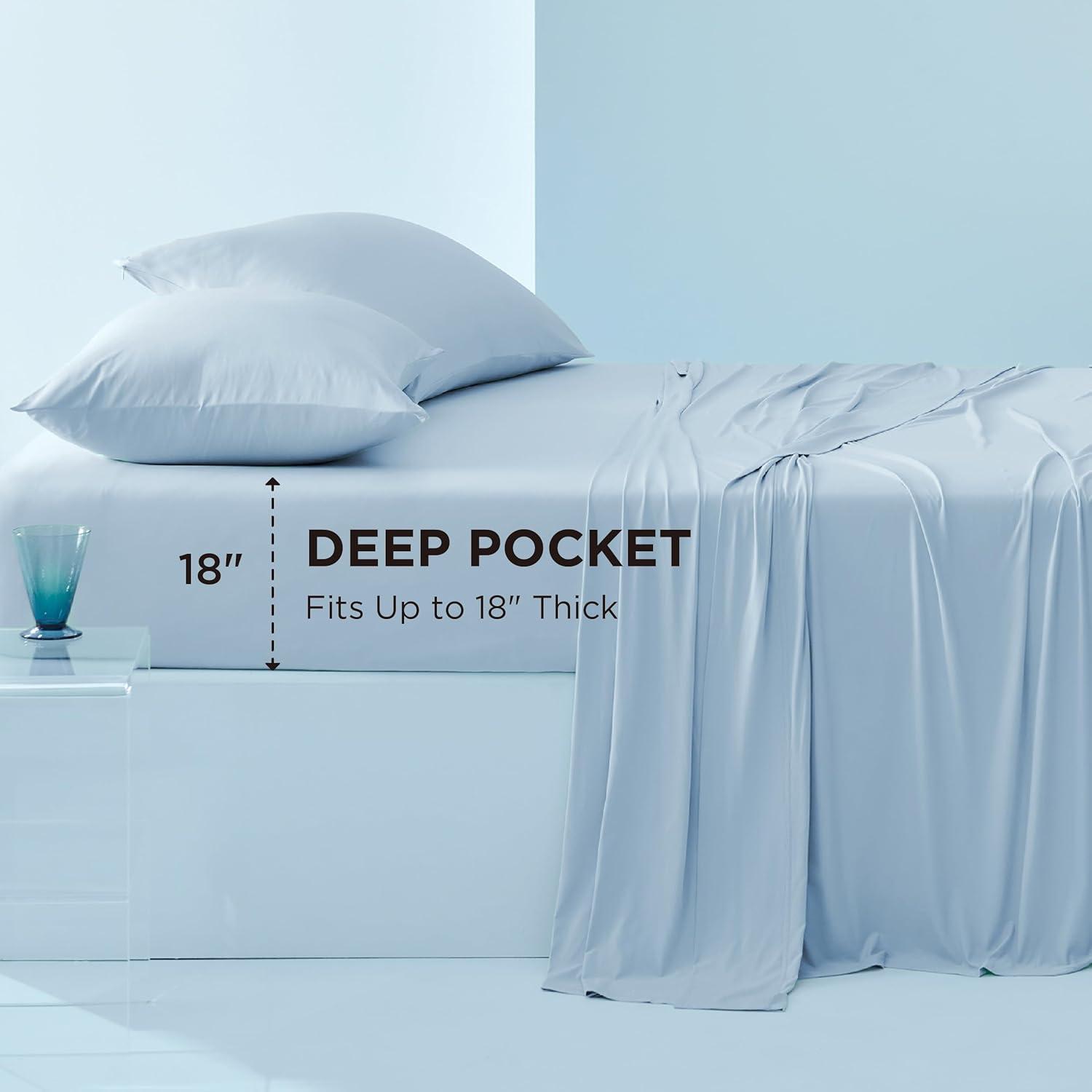 imageBedsure Cooling Sheets Queen Size Cooling Bed Sheets for Hot Sleepers Chill Cool Sheet Deep Pocket Up to 18 Inches Soft amp Breathable Queen Sheet Set 4 Pieces White04  Blue