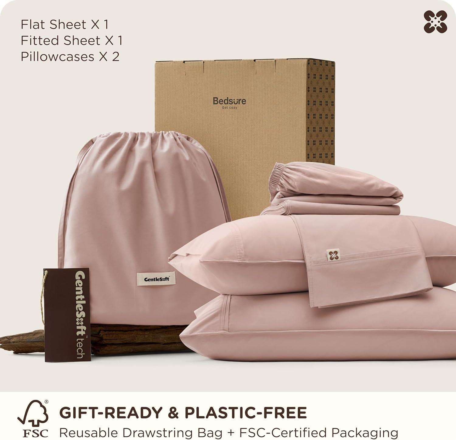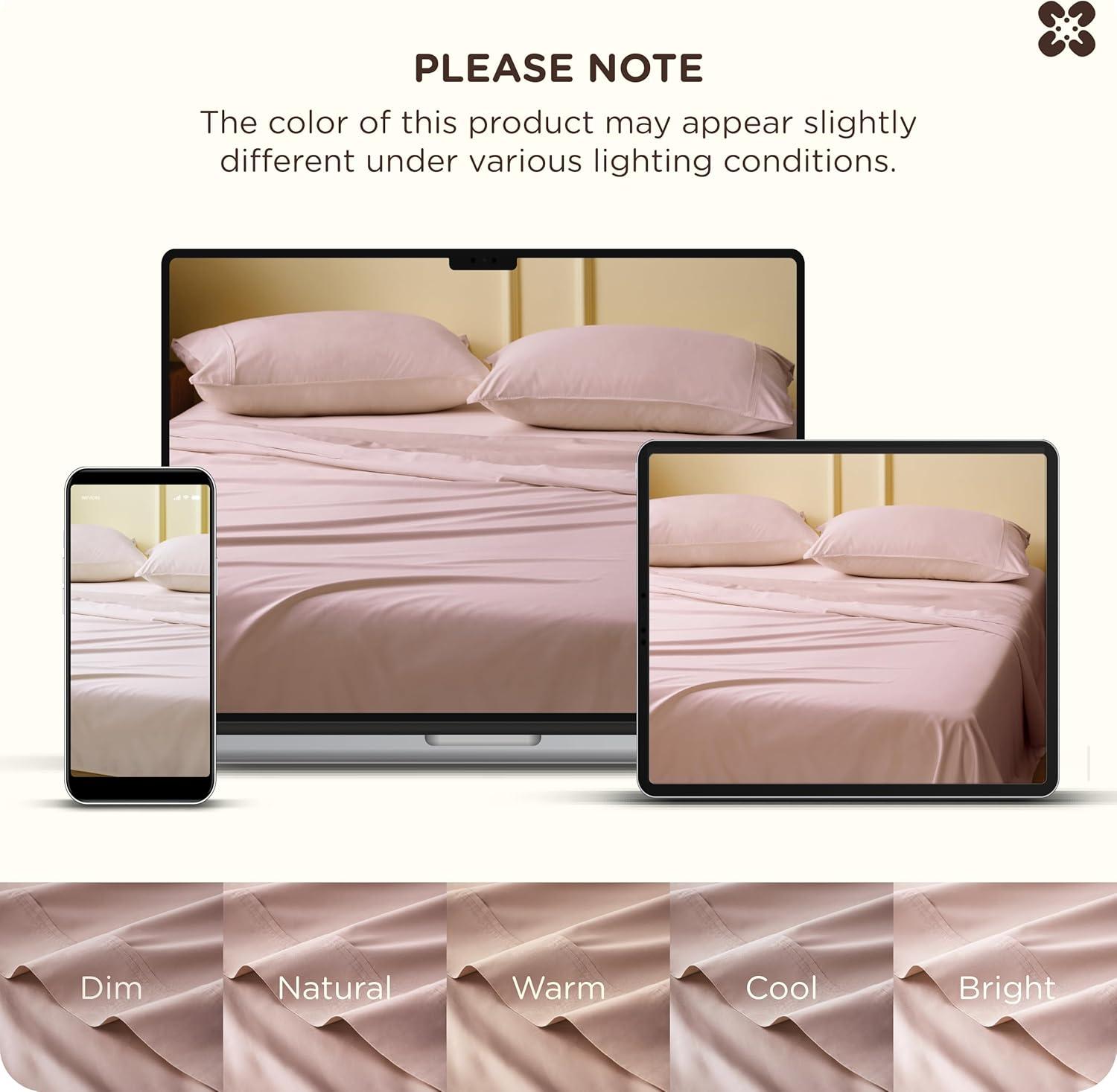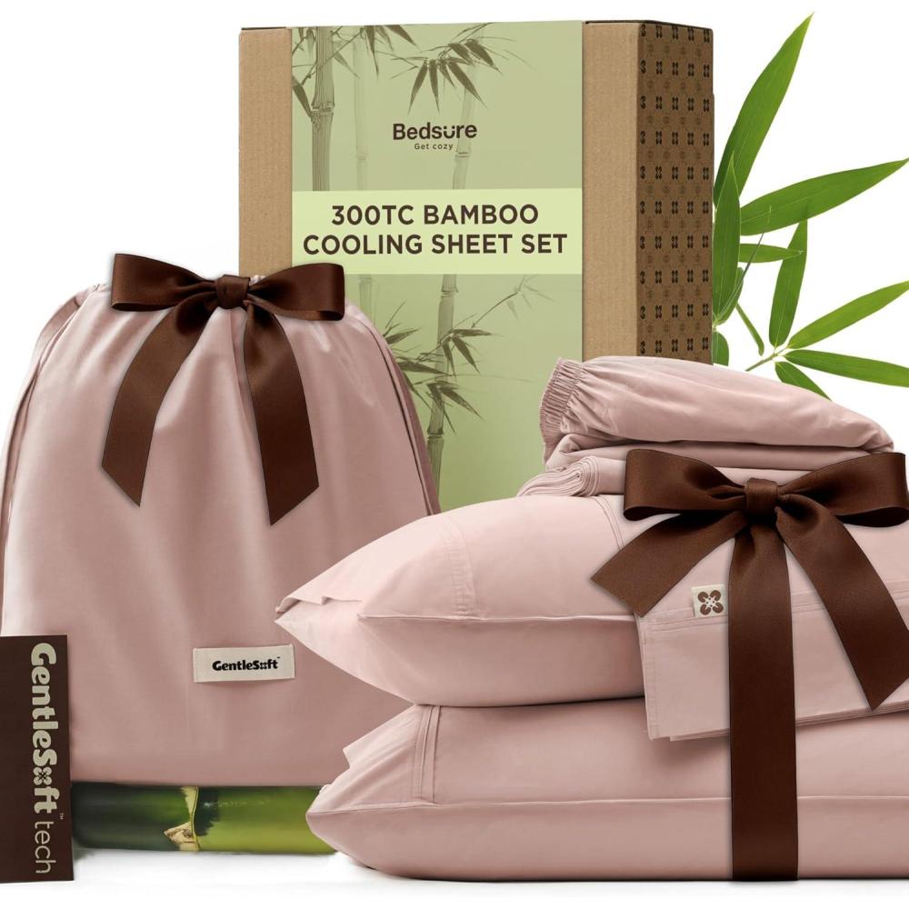 Bedsure Cooling Sheets, Rayon Derived from Bamboo & Cotton Blend, GentleSoft, Breathable, Queen Sheet Set, Deep Pocket Up to 18 Inches, Hotel Luxury Bedding for Hot Sleepers, Dusty Blue(Rose Pink)
