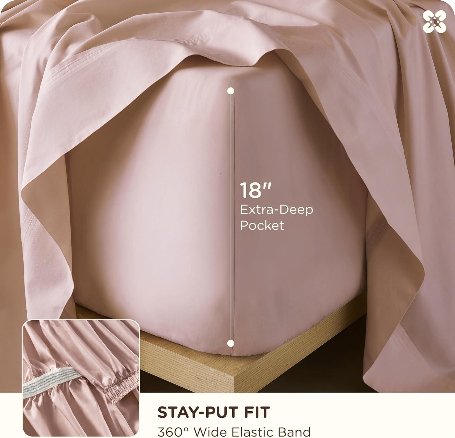 imageBedsure Cooling Sheets Rayon Derived from Bamboo ampamp Cotton Blend GentleSoft Breathable Queen Sheet Set Deep Pocket Up to 18 Inches Hotel Luxury Bedding for Hot Sleepers Dusty BlueRose Pink
