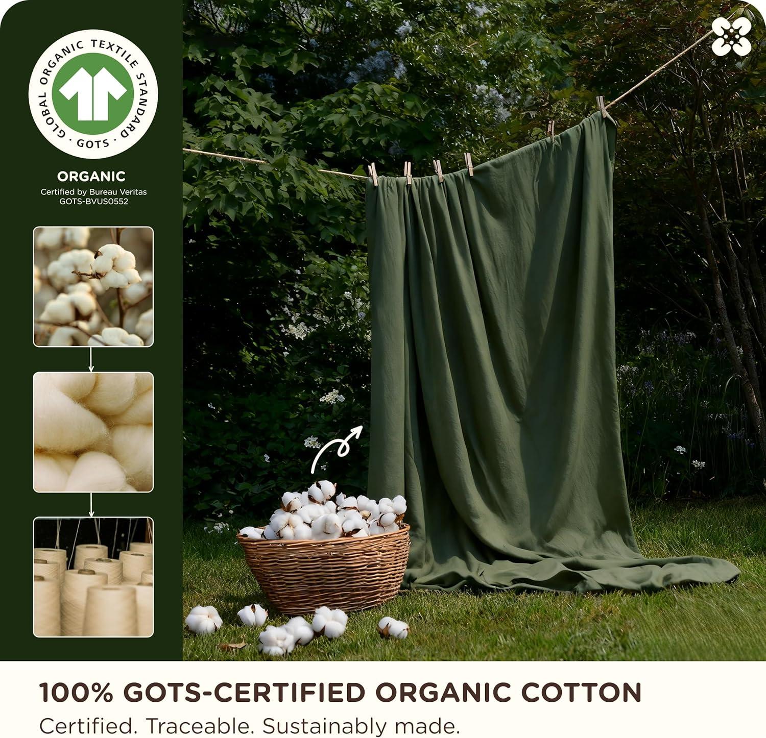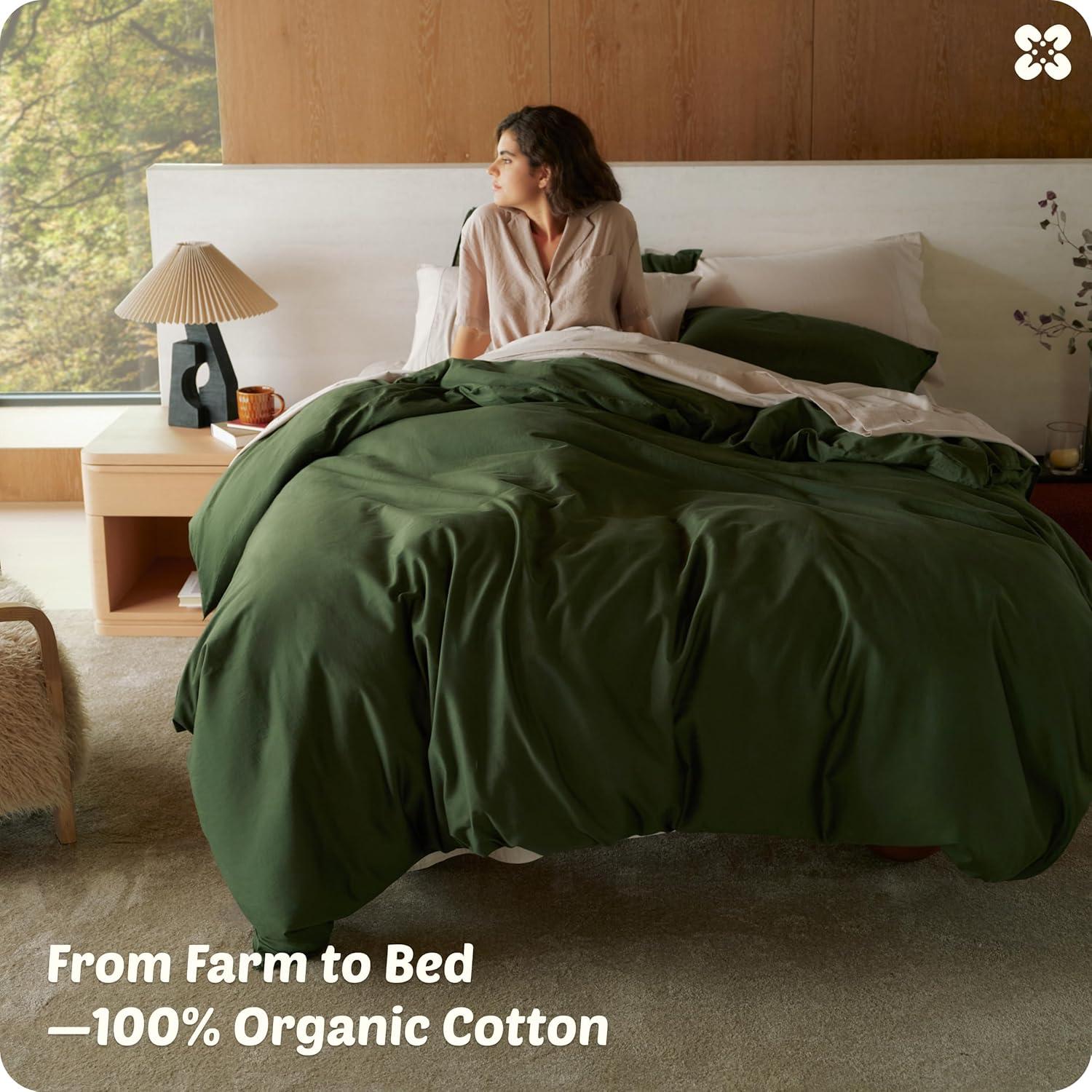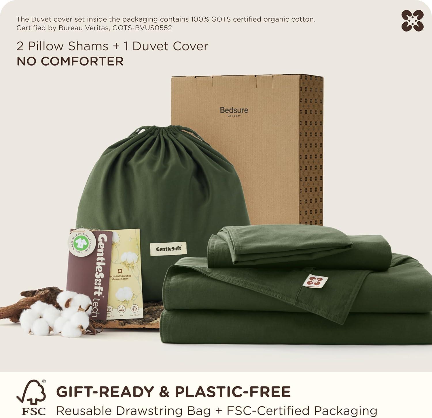 Bedsure Cotton Duvet Cover Queen, 100% GOTS Organic Cotton Duvet Cover Set, Fair Trade Certified Queen Bedding Set, Eco-Friendly, Ultra-Soft, Breathable Home Bedding for All Seasons(Ivory, 90″x90″)(002 – Olive Green – Organic)