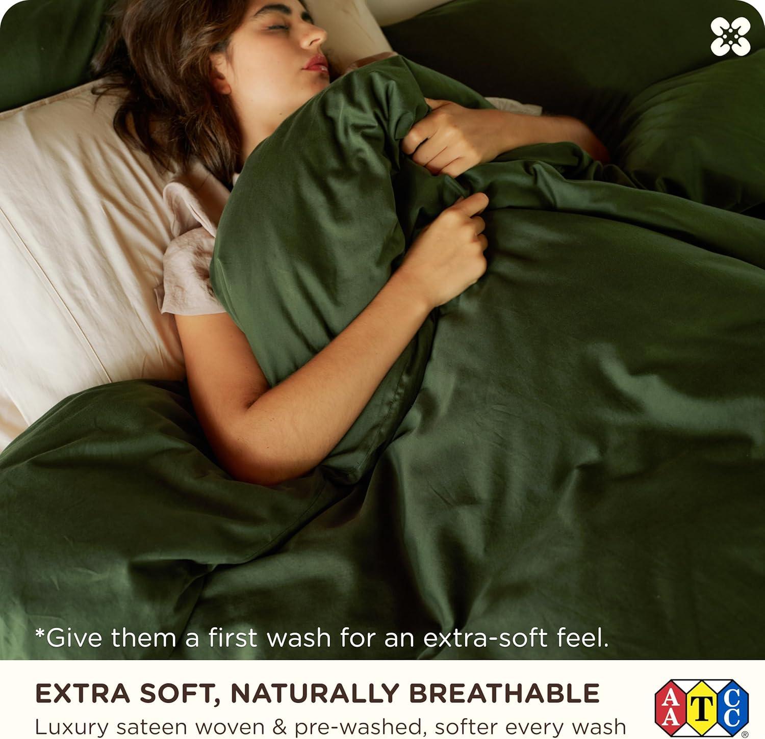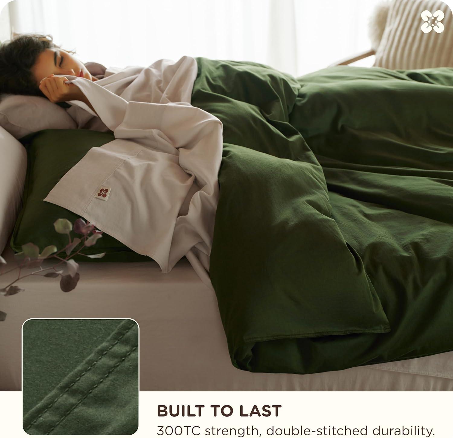 Long-Lasting & Easy Care: Featuring double-stitched edges and tightly woven 300TC sateen fabric for enhanced strength and durability. Lab-tested seam strength of 15.3 lbf ensures long-lasting performance. This organic cotton queen duvet cover set is easy to maintain—machine wash cold, tumble dry low, and remove promptly to minimize wrinkles