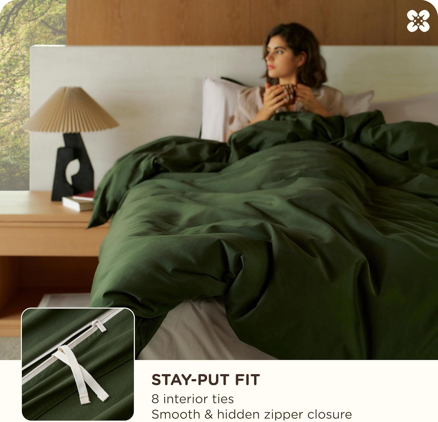 Stay-Put Design: These 100% organic cotton duvet covers are designed with 8 interior ties to keep your comforter securely in place without bunching or shifting. The hidden zipper closure seals faster and smoother than traditional buttons. Pillow shams feature secure envelope closures, so every piece stays exactly where it should be