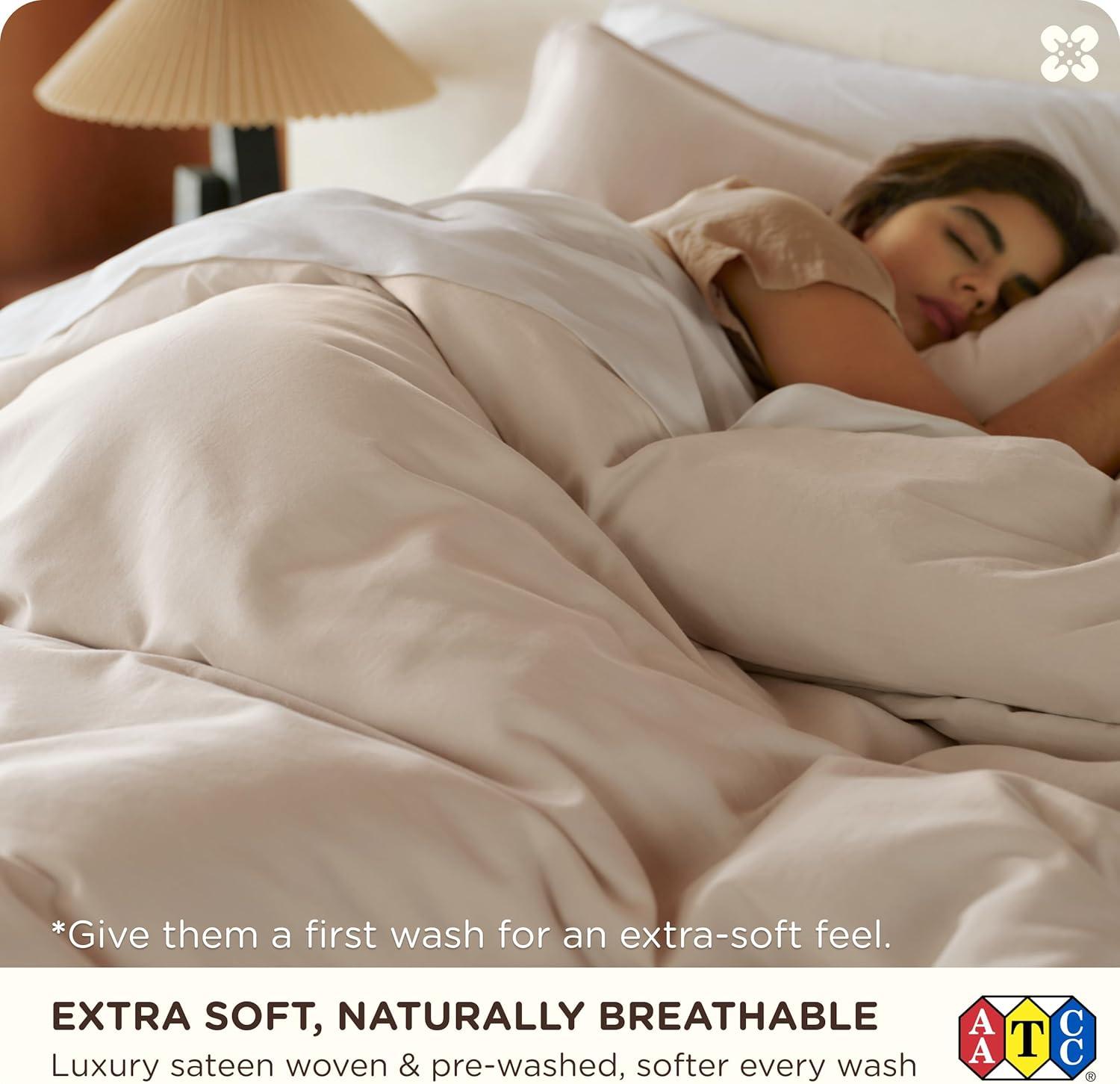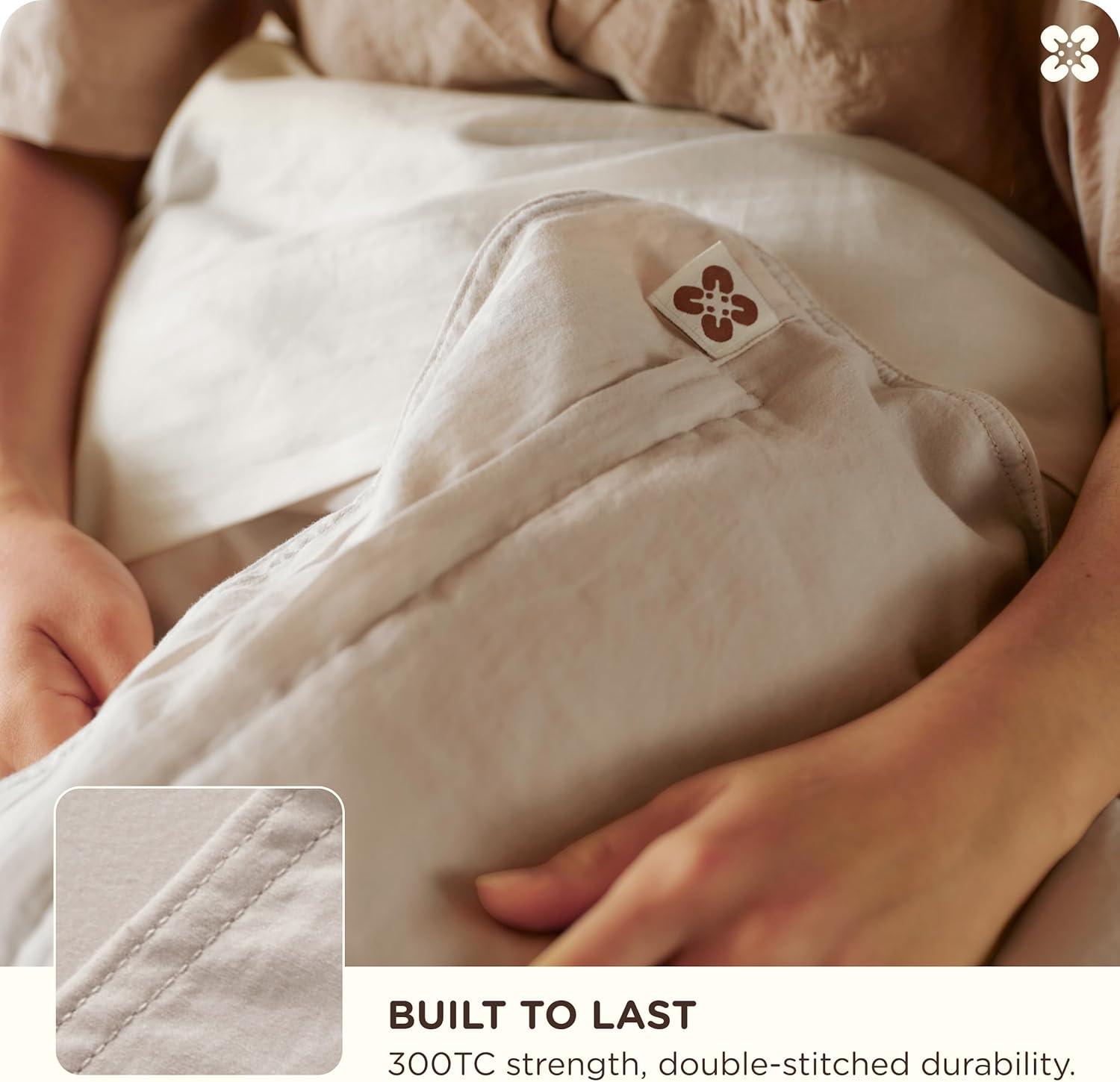 Long-Lasting & Easy Care: Featuring double-stitched edges and tightly woven 300TC sateen fabric for enhanced strength and durability. Lab-tested seam strength of 15.3 lbf ensures long-lasting performance. This organic cotton queen duvet cover set is easy to maintain—machine wash cold, tumble dry low, and remove promptly to minimize wrinkles