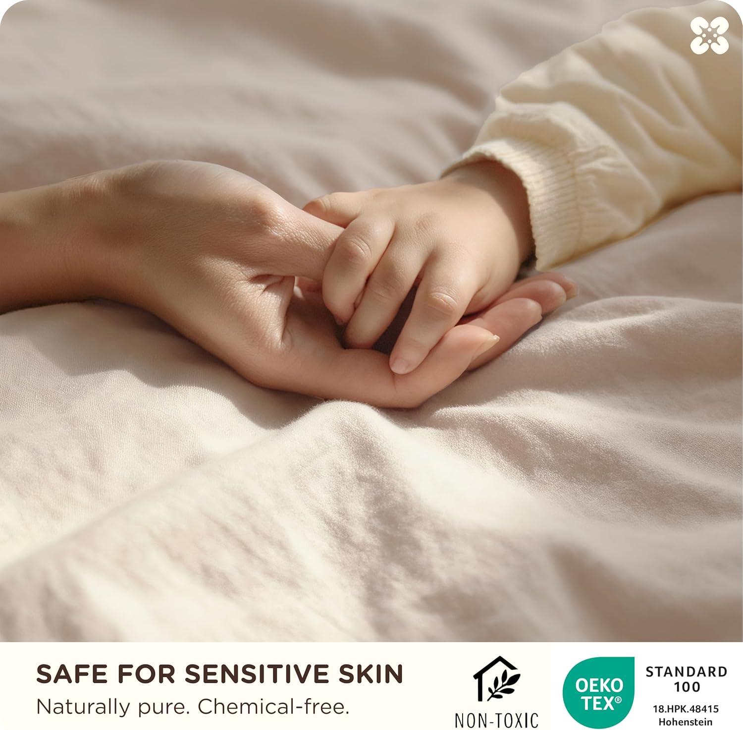 100% GOTS Certified Organic Cotton Duvet Cover For Sensitive Skin: From organic fields to your bed—This organic cotton duvet cover queen size set is made with 100% certified organic Turkish cotton, naturally pure, free from GMOs, formaldehyde, and harmful chemicals. Certified by GOTS (Scope Certificate No. GOTS-BVUS0552) and OEKO-TEX Standard 100 (18.HPK.48415), it's hypoallergenic, breathable, and perfect for even the most sensitive skin. So safe and gentle, you can sleep in it bare-skinned