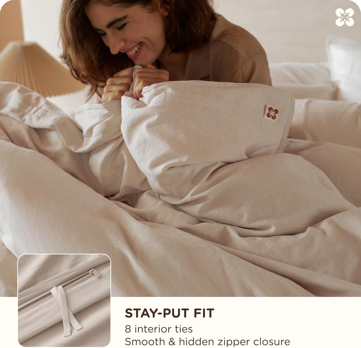 Softens Over Time, Surprisingly Comfortable: Crafted with 300-thread-count combed cotton, this organic cotton bed duvet covers queen set is garment-washed and lightly brushed for lasting softness and durability. It gets softer with every wash—just like your favorite old T-shirt, that perfectly broken-in softness you know by heart. Cozy, breathable, and gentle against the skin, it’s the kind of comfort that feels like home