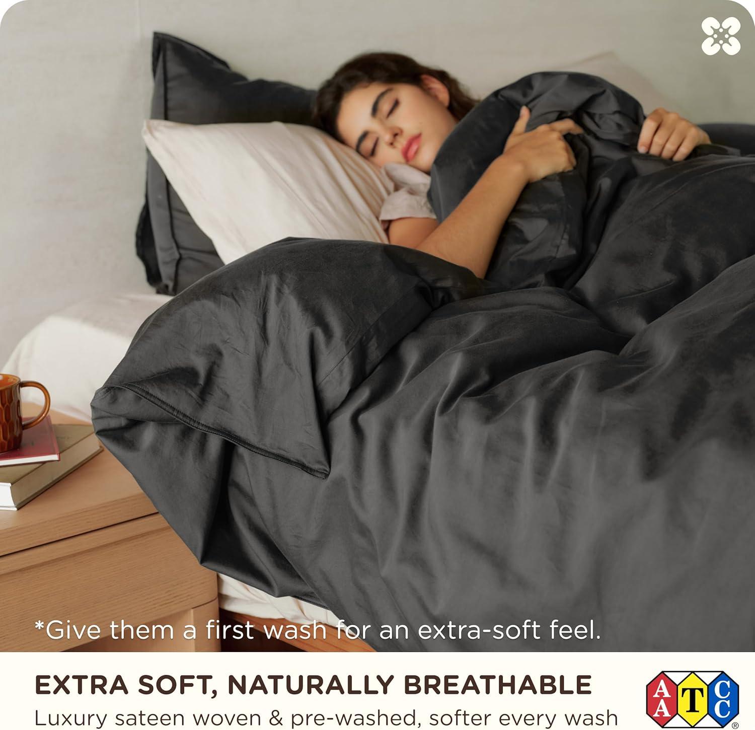 Long-Lasting & Easy Care: Featuring double-stitched edges and tightly woven 300TC sateen fabric for enhanced strength and durability. Lab-tested seam strength of 15.3 lbf ensures long-lasting performance. This organic cotton queen duvet cover set is easy to maintain—machine wash cold, tumble dry low, and remove promptly to minimize wrinkles