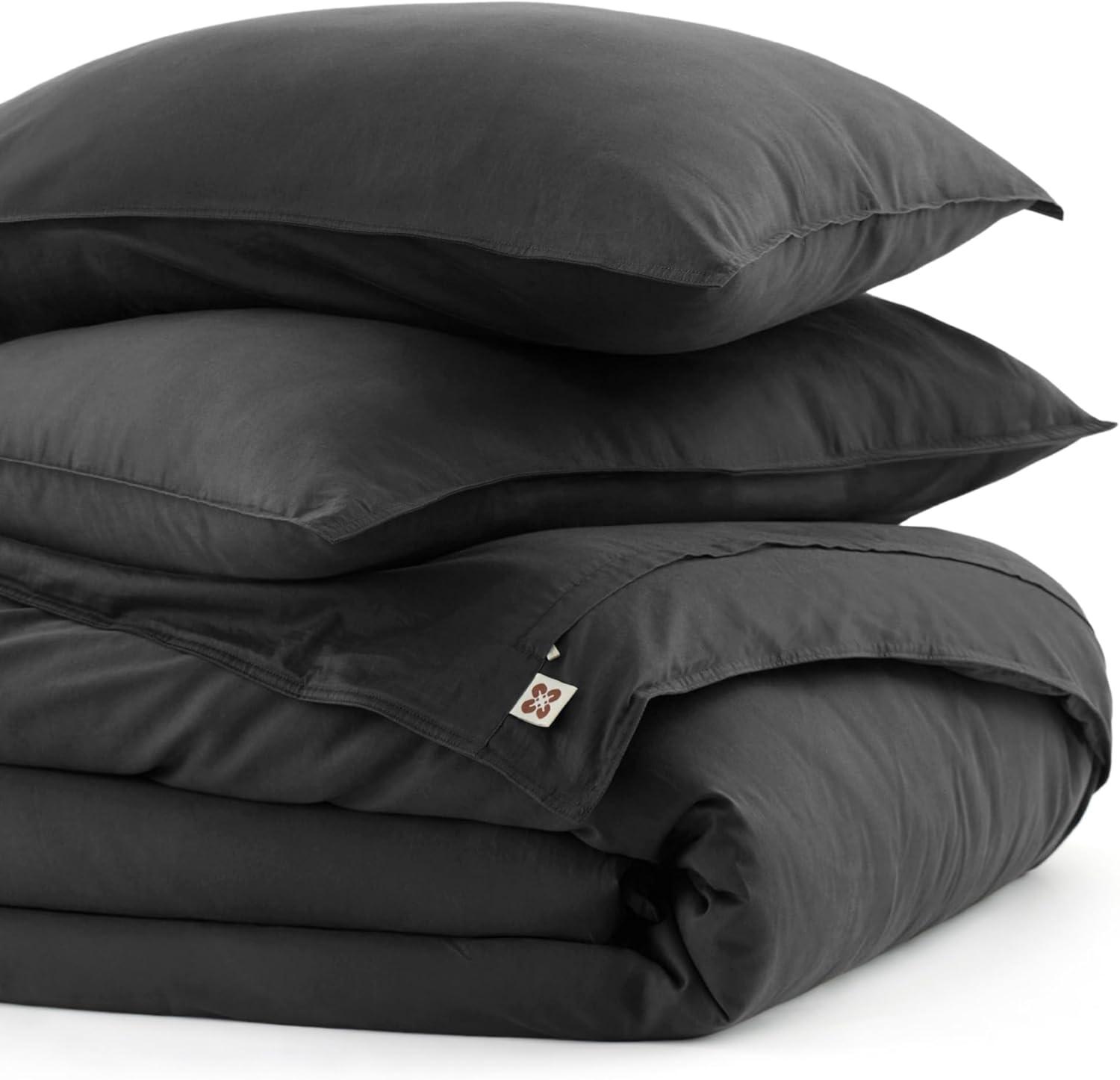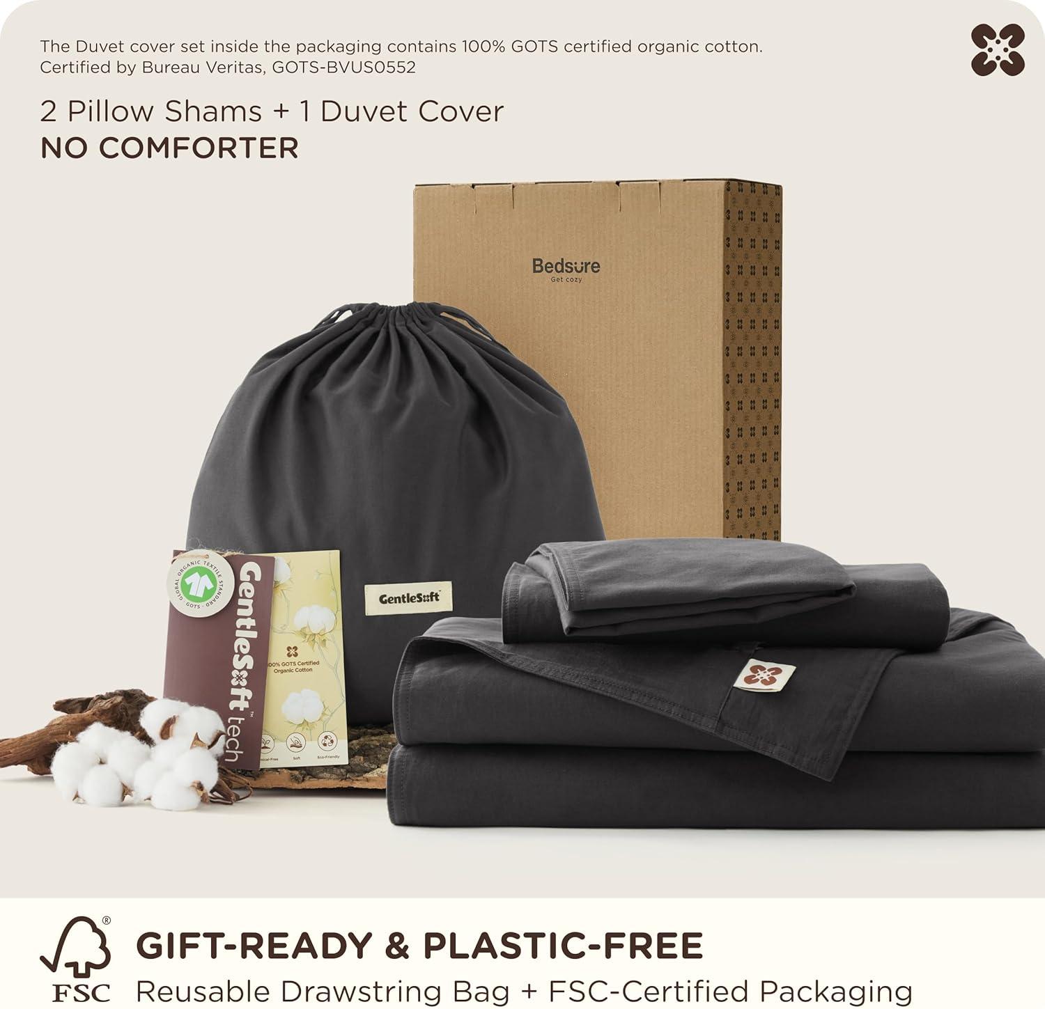 Bedsure Cotton Duvet Cover Queen, 100% GOTS Organic Cotton Duvet Cover Set, Fair Trade Certified Queen Bedding Set, Eco-Friendly, Ultra-Soft, Breathable Home Bedding for All Seasons(Ivory, 90″x90″)(004 – Dark Grey – Organic)