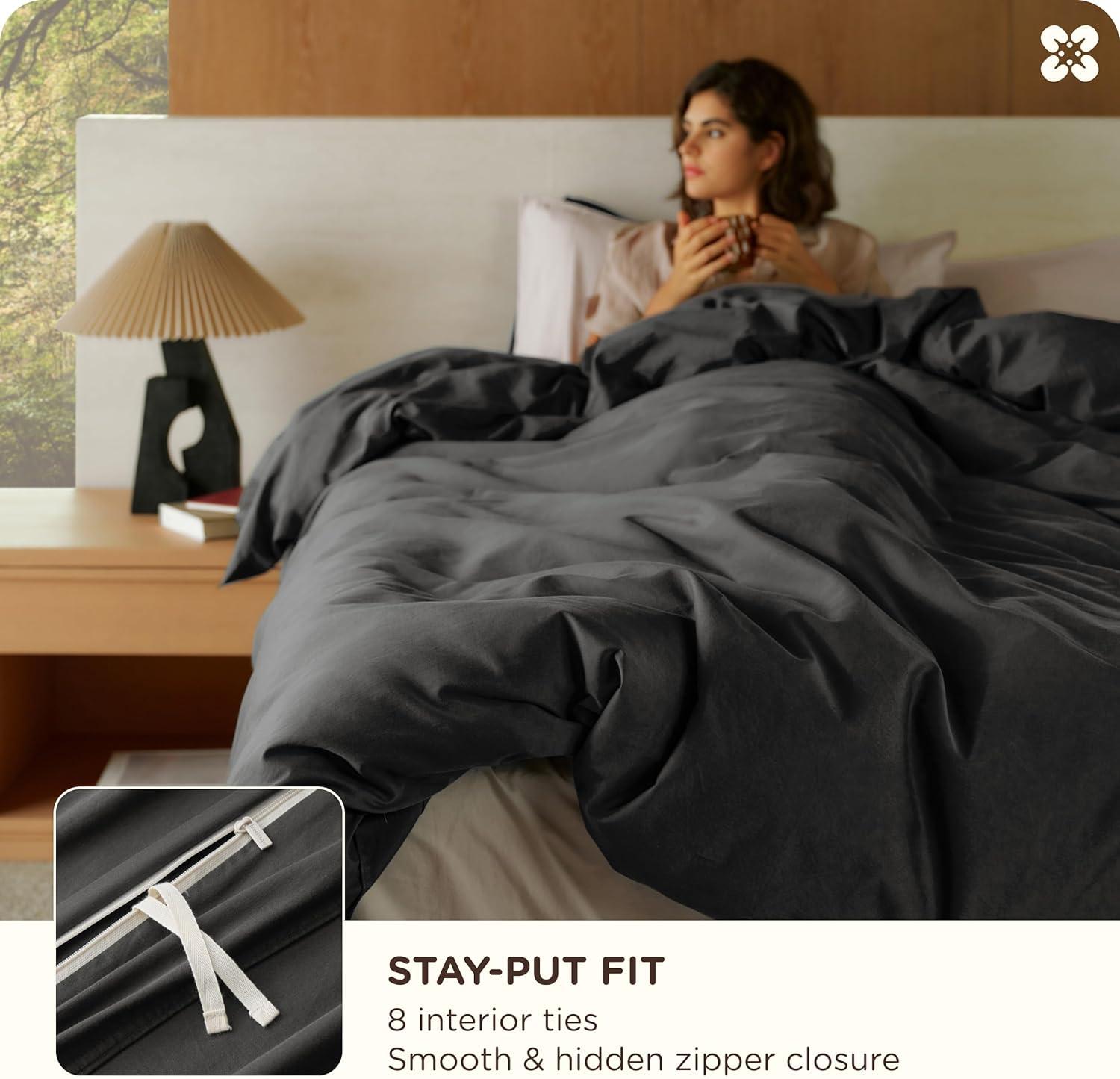 Stay-Put Design: These 100% organic cotton duvet covers are designed with 8 interior ties to keep your comforter securely in place without bunching or shifting. The hidden zipper closure seals faster and smoother than traditional buttons. Pillow shams feature secure envelope closures, so every piece stays exactly where it should be