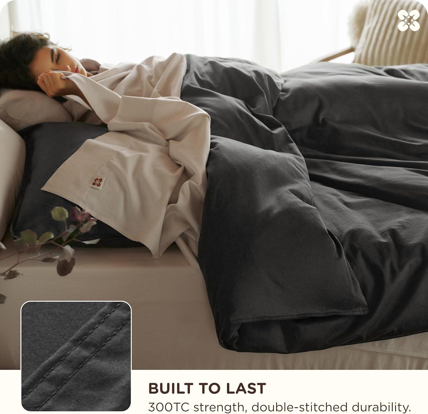 Softens Over Time, Surprisingly Comfortable: Crafted with 300-thread-count combed cotton, this organic cotton bed duvet covers queen set is garment-washed and lightly brushed for lasting softness and durability. It gets softer with every wash—just like your favorite old T-shirt, that perfectly broken-in softness you know by heart. Cozy, breathable, and gentle against the skin, it’s the kind of comfort that feels like home