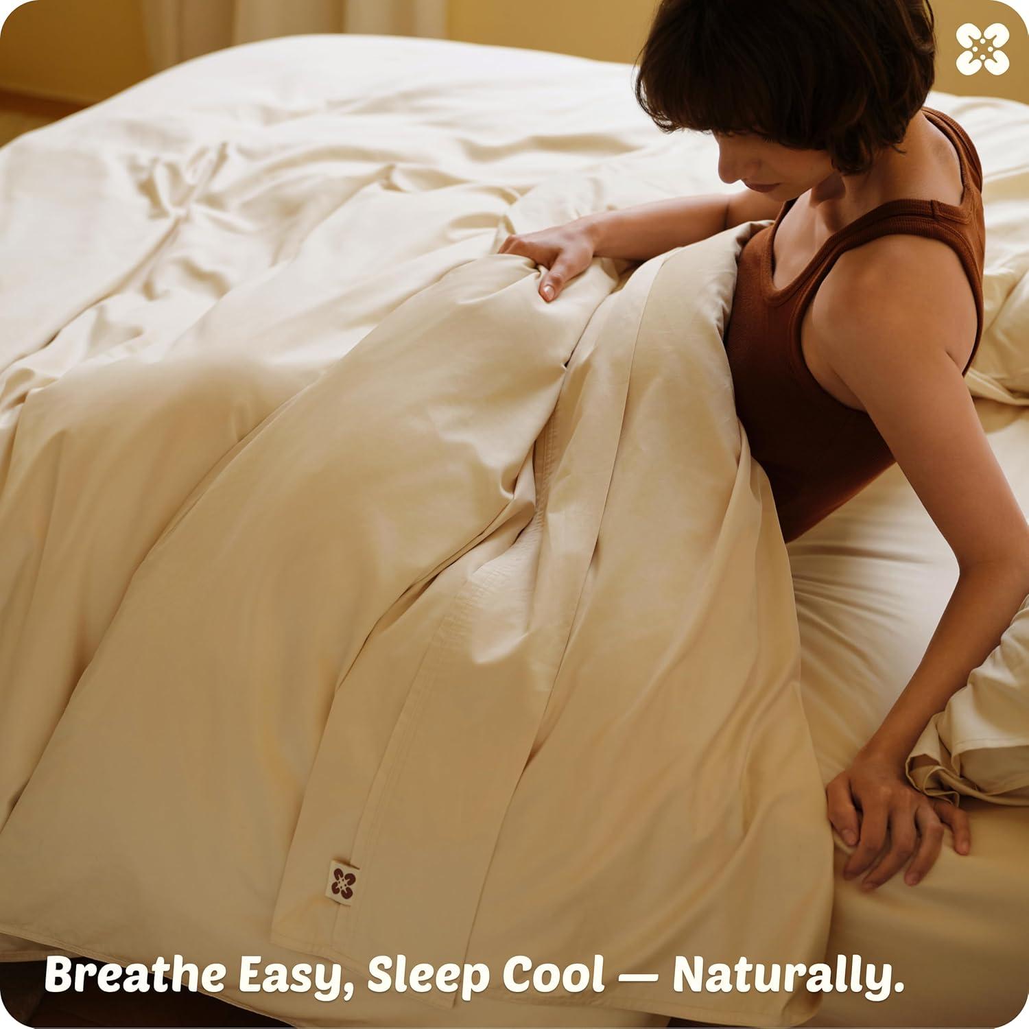 Bedsure Cotton Duvet Cover Queen, 100% GOTS Organic Cotton Duvet Cover Set, Fair Trade Certified Queen Bedding Set, Eco-Friendly, Ultra-Soft, Breathable Home Bedding for All Seasons(Ivory, 90″x90″)(02 – Cooling Linen (No Comforter))