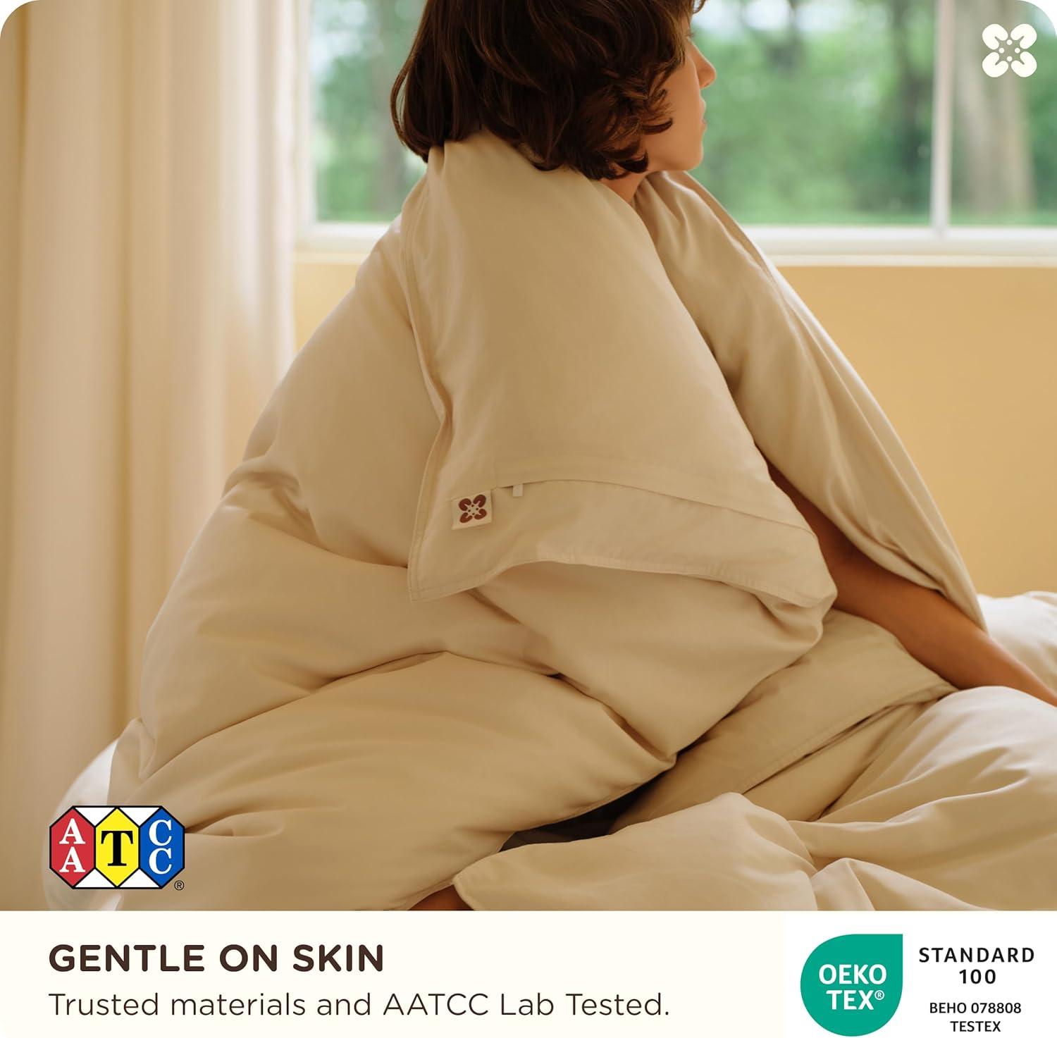 100% GOTS Certified Organic Cotton Duvet Cover For Sensitive Skin: From organic fields to your bed—This organic cotton duvet cover queen size set is made with 100% certified organic Turkish cotton, naturally pure, free from GMOs, formaldehyde, and harmful chemicals. Certified by GOTS (Scope Certificate No. GOTS-BVUS0552) and OEKO-TEX Standard 100 (18.HPK.48415), it's hypoallergenic, breathable, and perfect for even the most sensitive skin. So safe and gentle, you can sleep in it bare-skinned