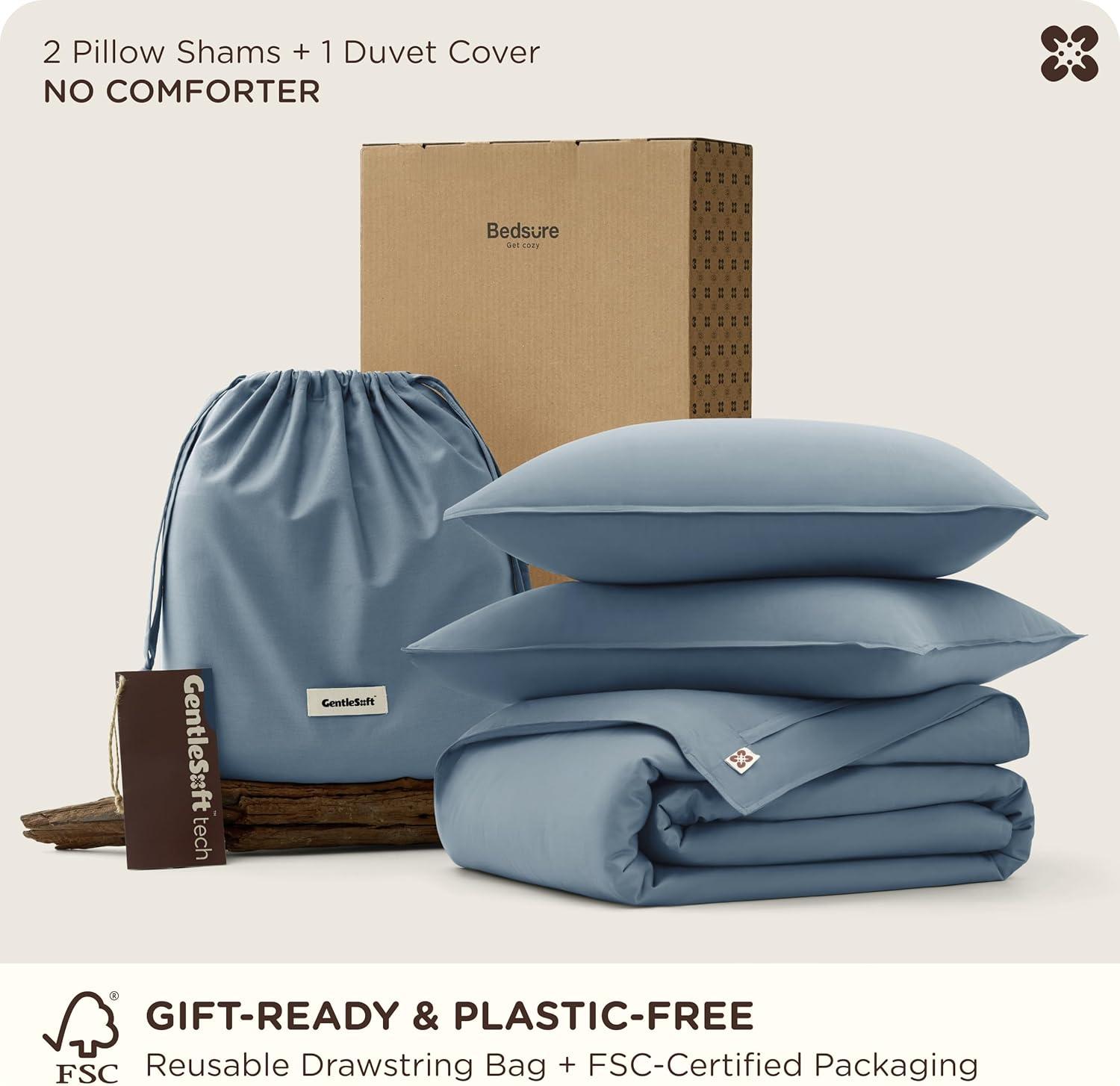 Bedsure Cotton Duvet Cover Queen, 100% GOTS Organic Cotton Duvet Cover Set, Fair Trade Certified Queen Bedding Set, Eco-Friendly, Ultra-Soft, Breathable Home Bedding for All Seasons(Ivory, 90″x90″)(04 – Cooling Dusty Blue (No Comforter))