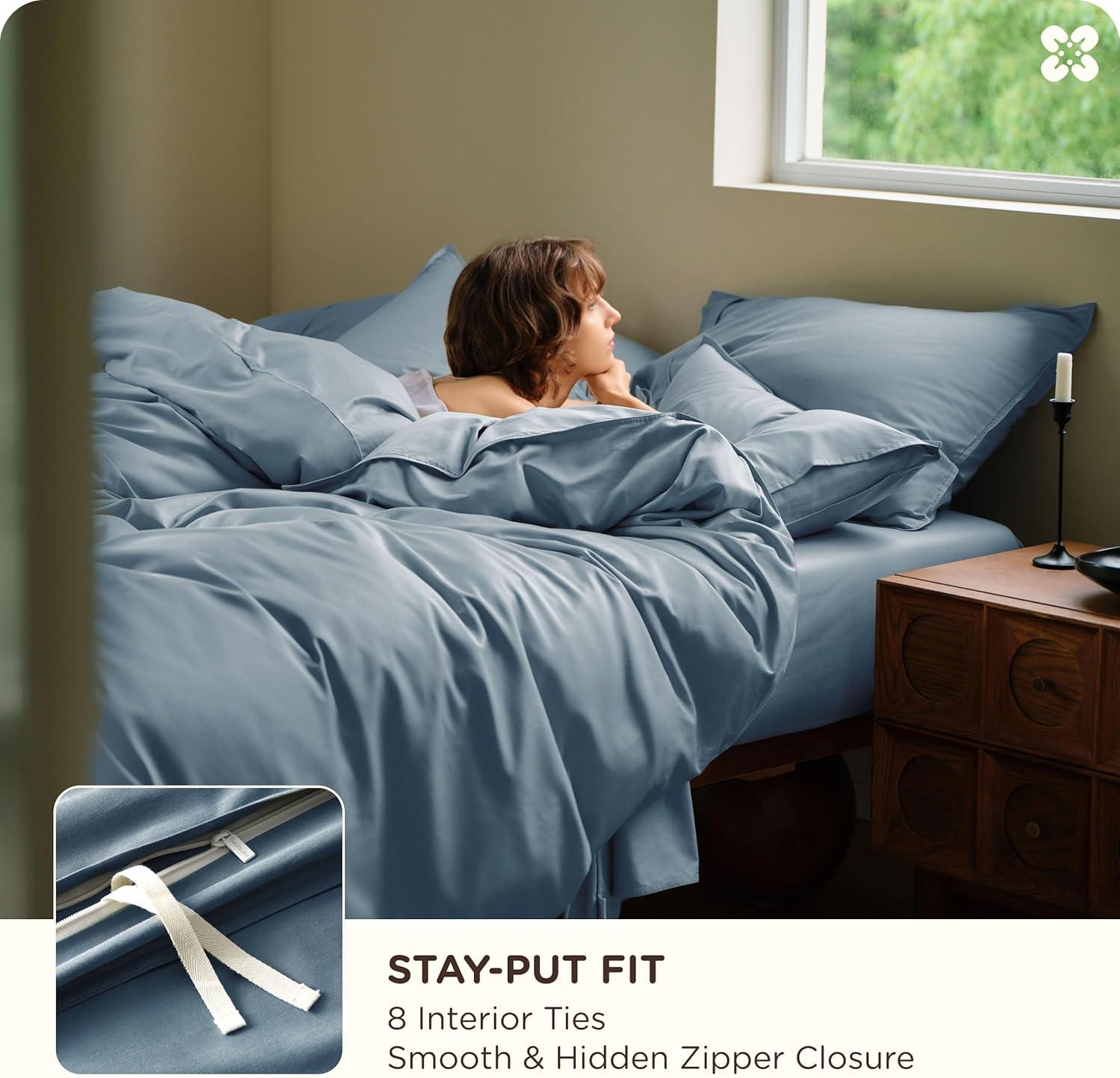 Stay-Put Design: These 100% organic cotton duvet covers are designed with 8 interior ties to keep your comforter securely in place without bunching or shifting. The hidden zipper closure seals faster and smoother than traditional buttons. Pillow shams feature secure envelope closures, so every piece stays exactly where it should be