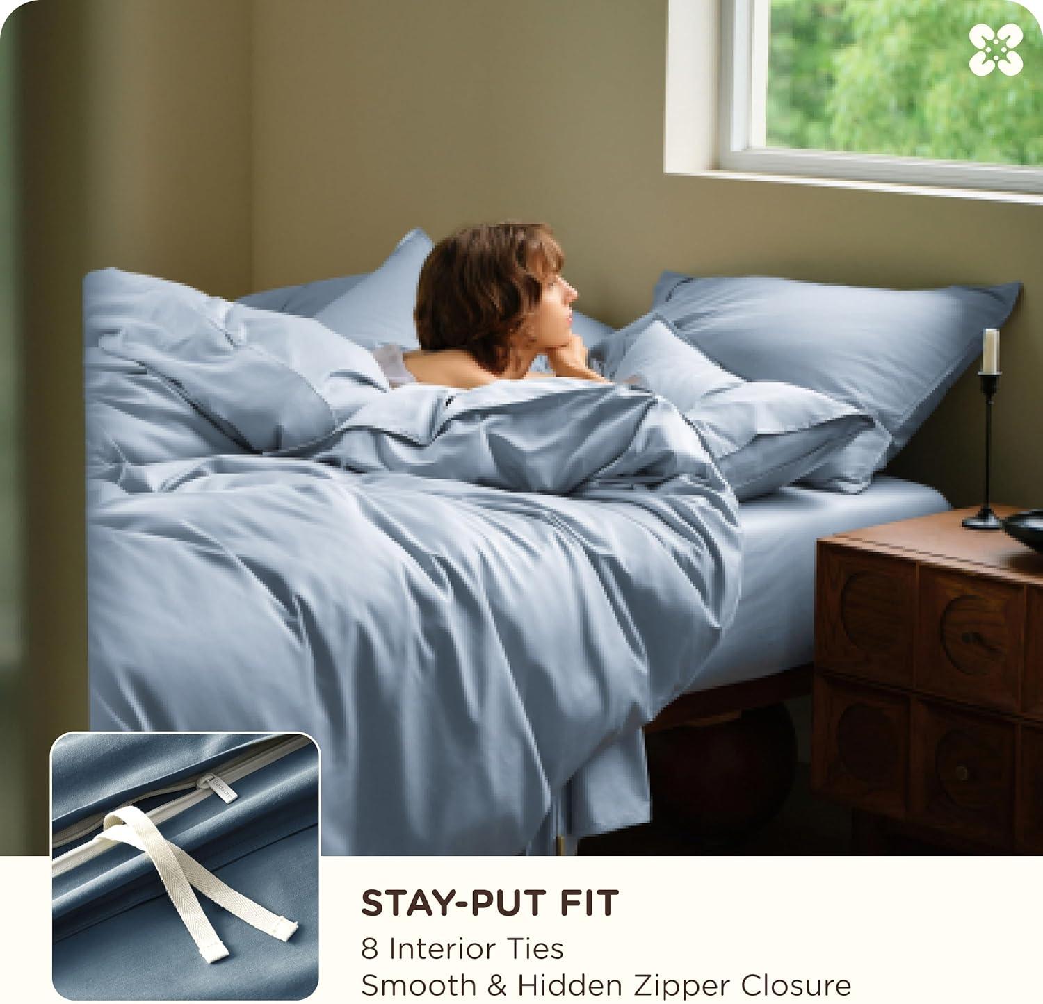 Stay-Put Design: These 100% organic cotton duvet covers are designed with 8 interior ties to keep your comforter securely in place without bunching or shifting. The hidden zipper closure seals faster and smoother than traditional buttons. Pillow shams feature secure envelope closures, so every piece stays exactly where it should be