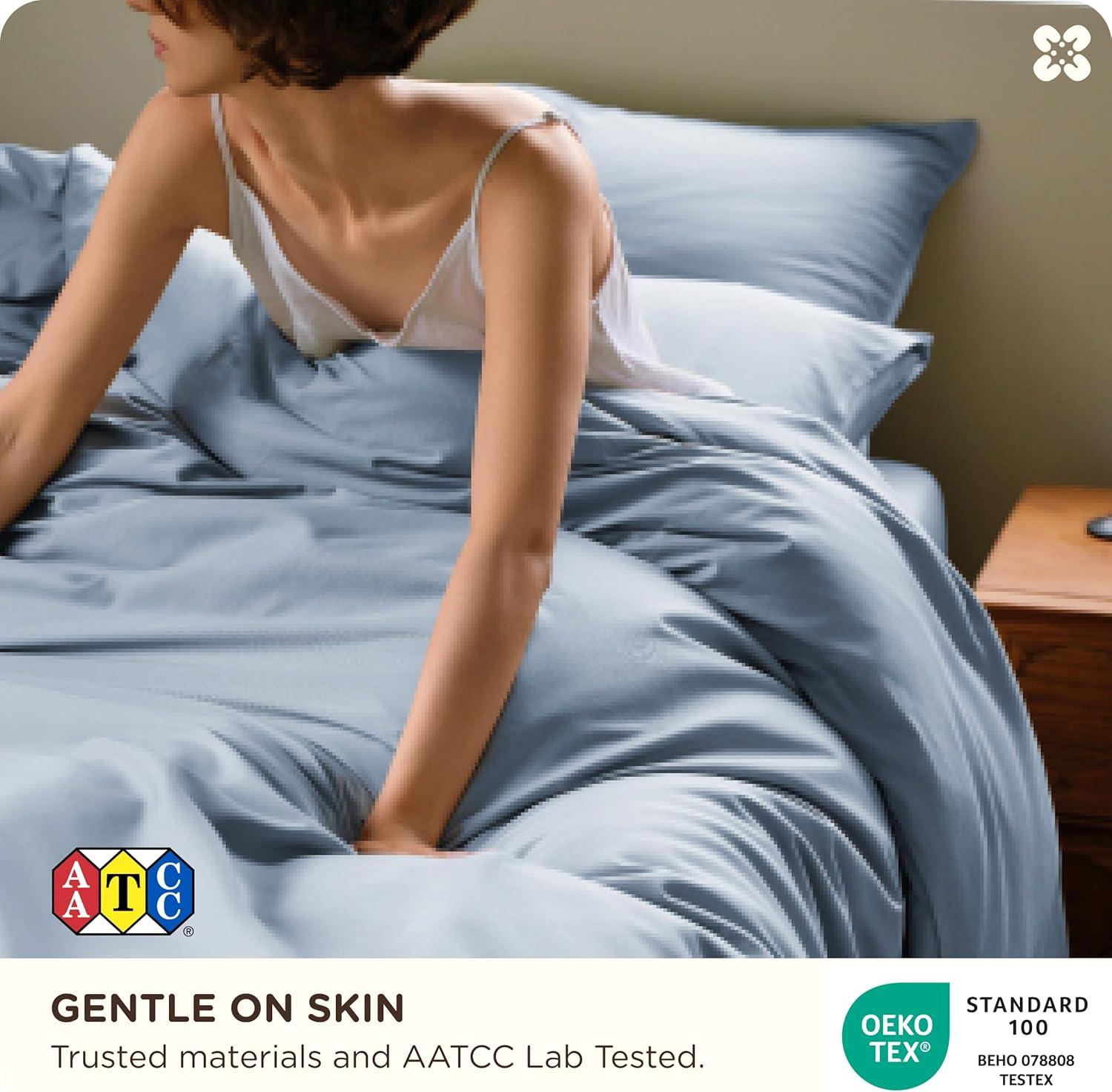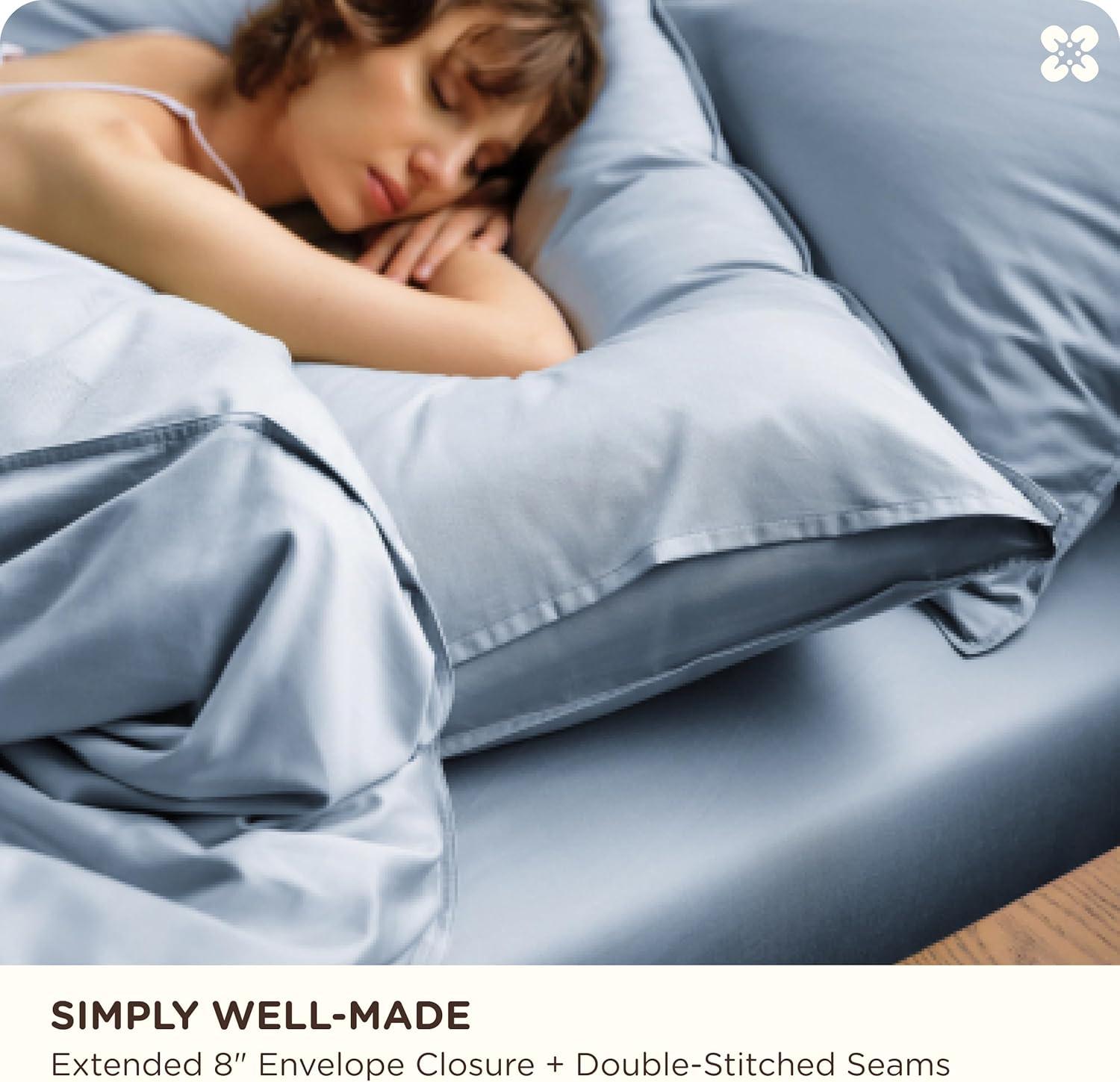 Long-Lasting & Easy Care: Featuring double-stitched edges and tightly woven 300TC sateen fabric for enhanced strength and durability. Lab-tested seam strength of 15.3 lbf ensures long-lasting performance. This organic cotton queen duvet cover set is easy to maintain—machine wash cold, tumble dry low, and remove promptly to minimize wrinkles