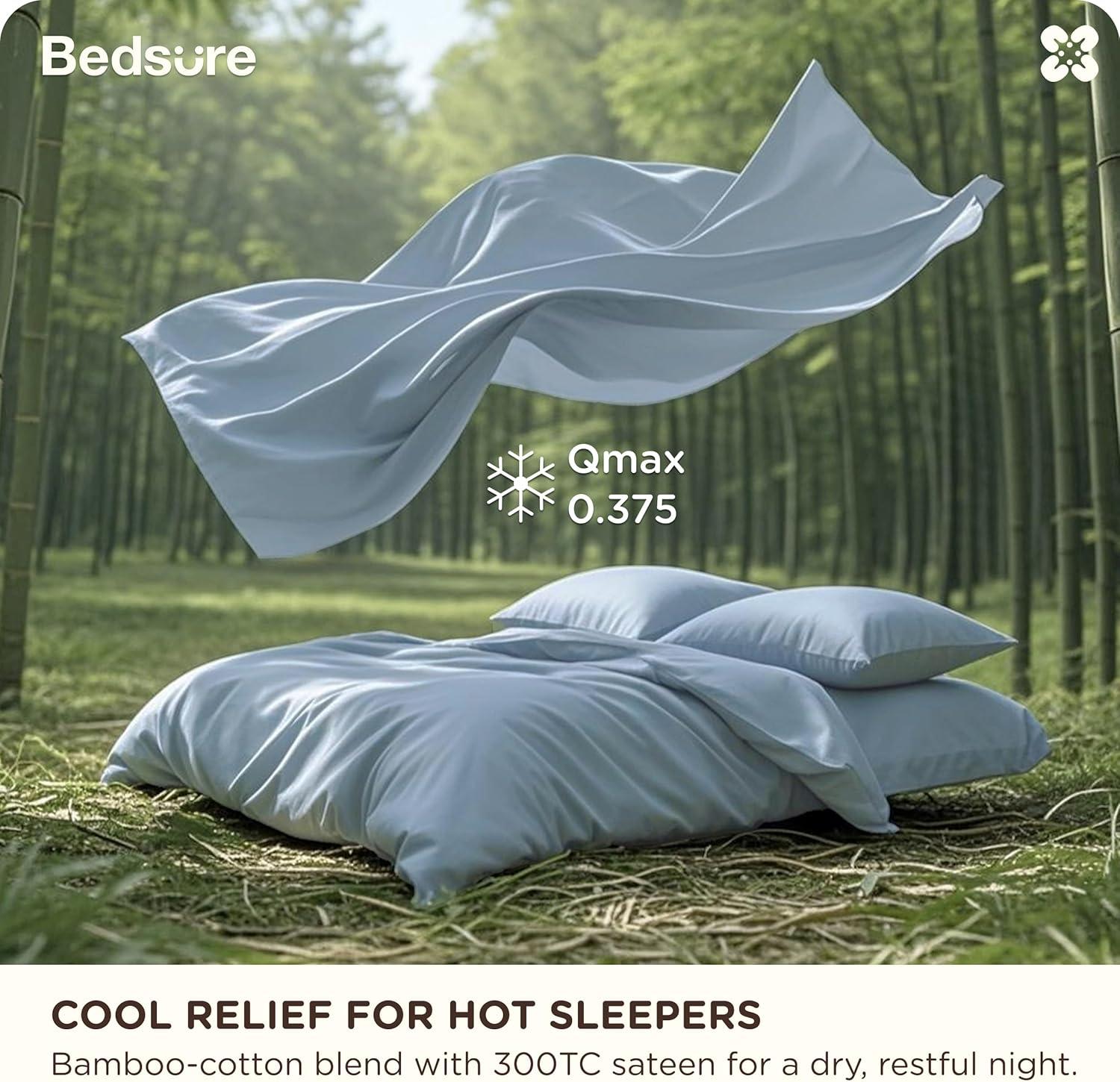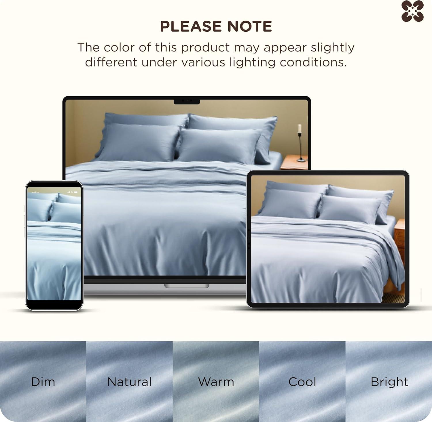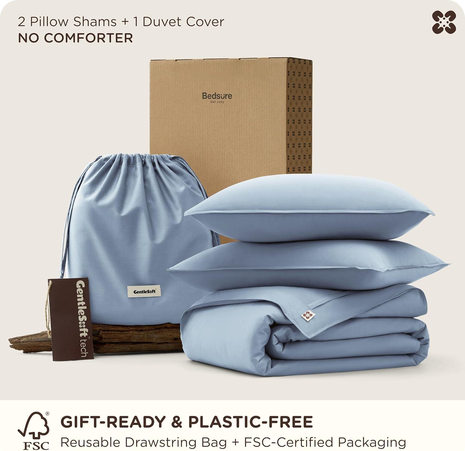 Bedsure Cotton Duvet Cover Queen, 100% GOTS Organic Cotton Duvet Cover Set, Fair Trade Certified Queen Bedding Set, Eco-Friendly, Ultra-Soft, Breathable Home Bedding for All Seasons(Ivory, 90"x90")(08 - Cooling Light Blue (No Comforter))