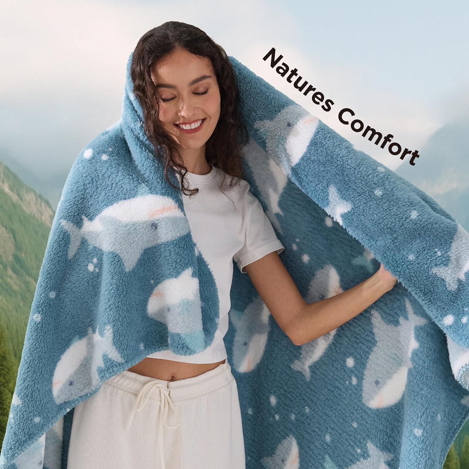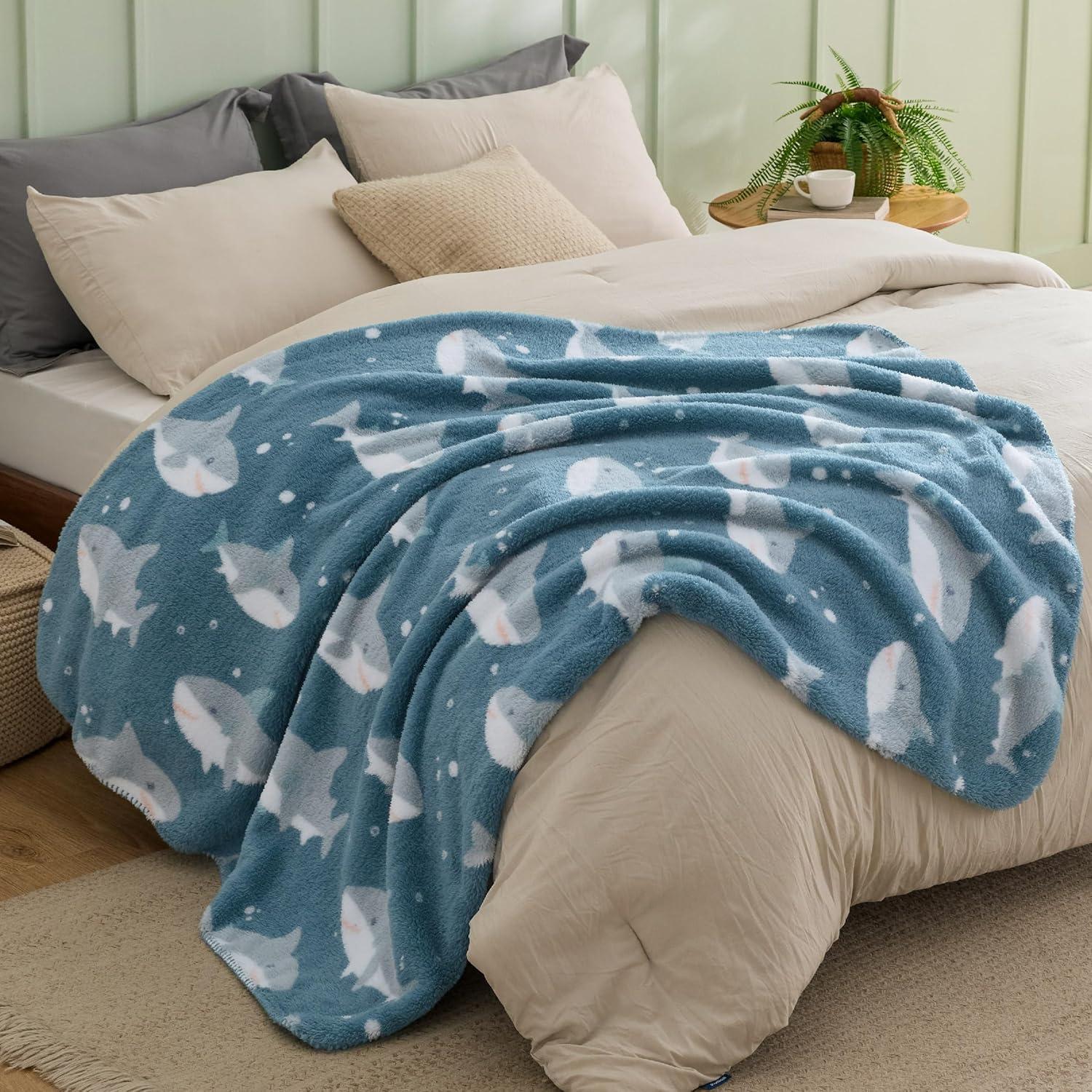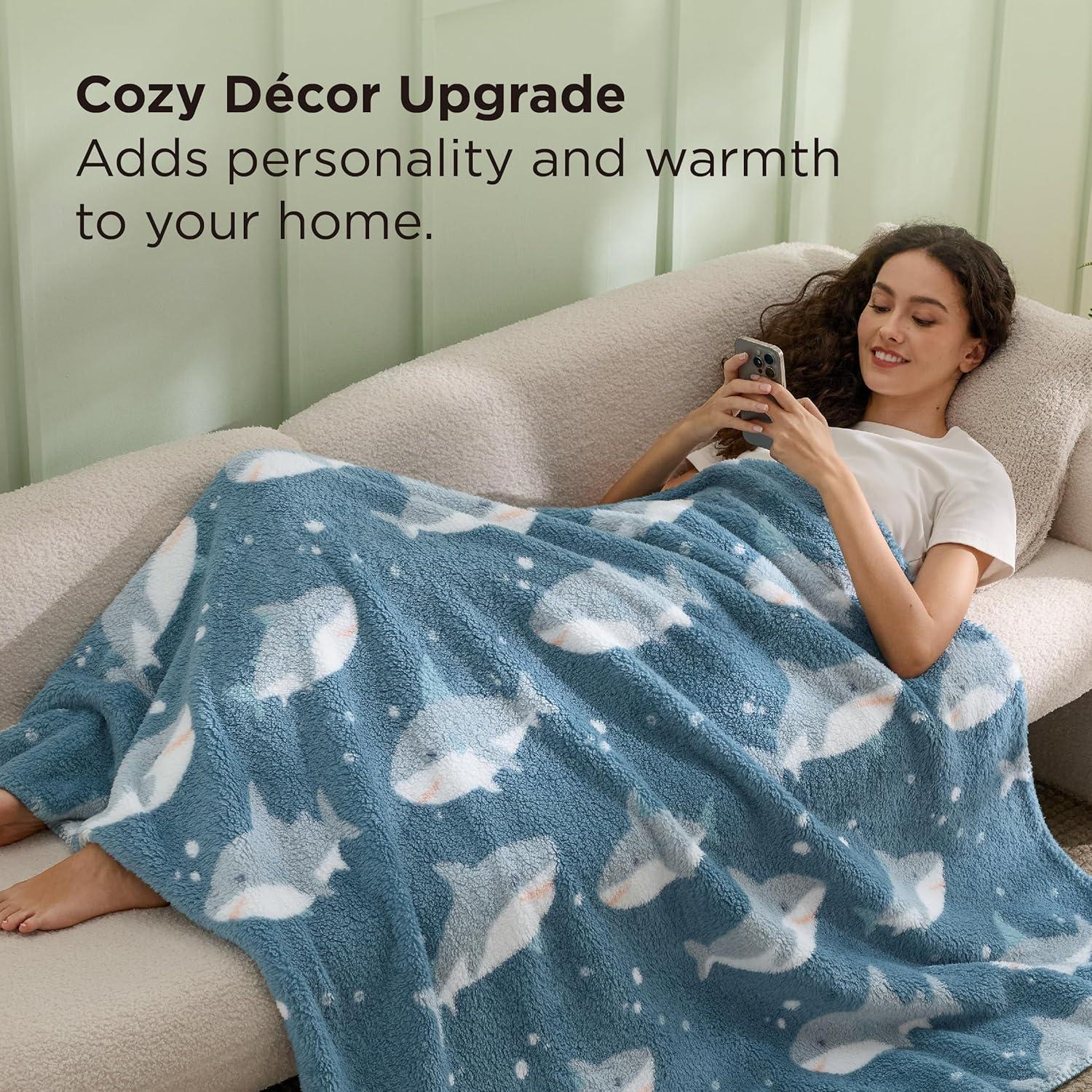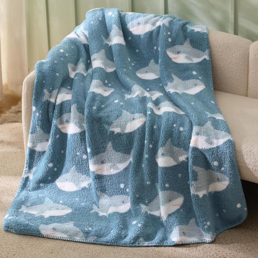 Bedsure Cute Strawberry Decor Throw Blanket Pink for Kids - Soft Fleece Throw Home Decor for Girls Women Teens as Birthday Gifts, GentleSoft Cozy Fruit Pattern Blankets for Couch Bed Camping, 50x60(Shark)