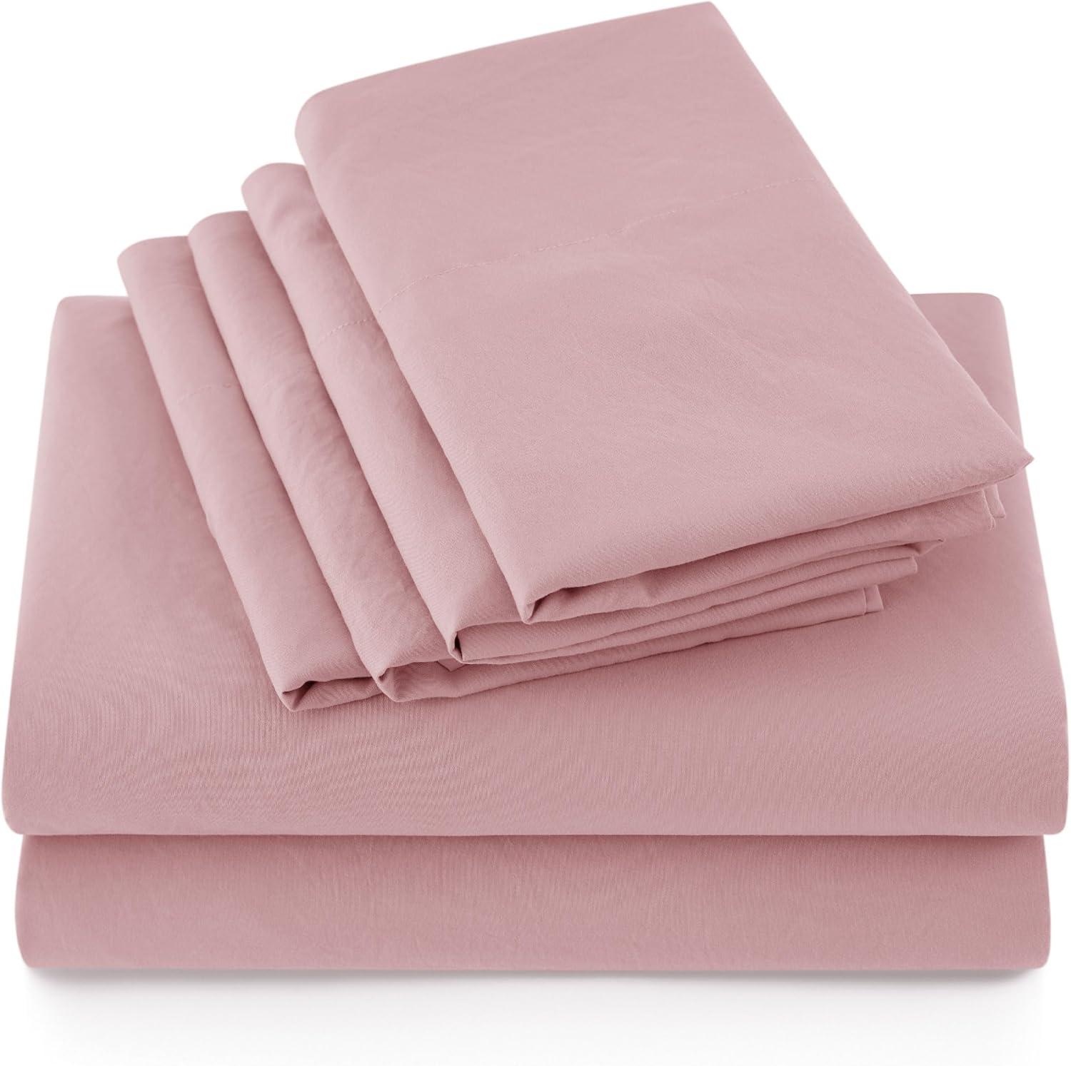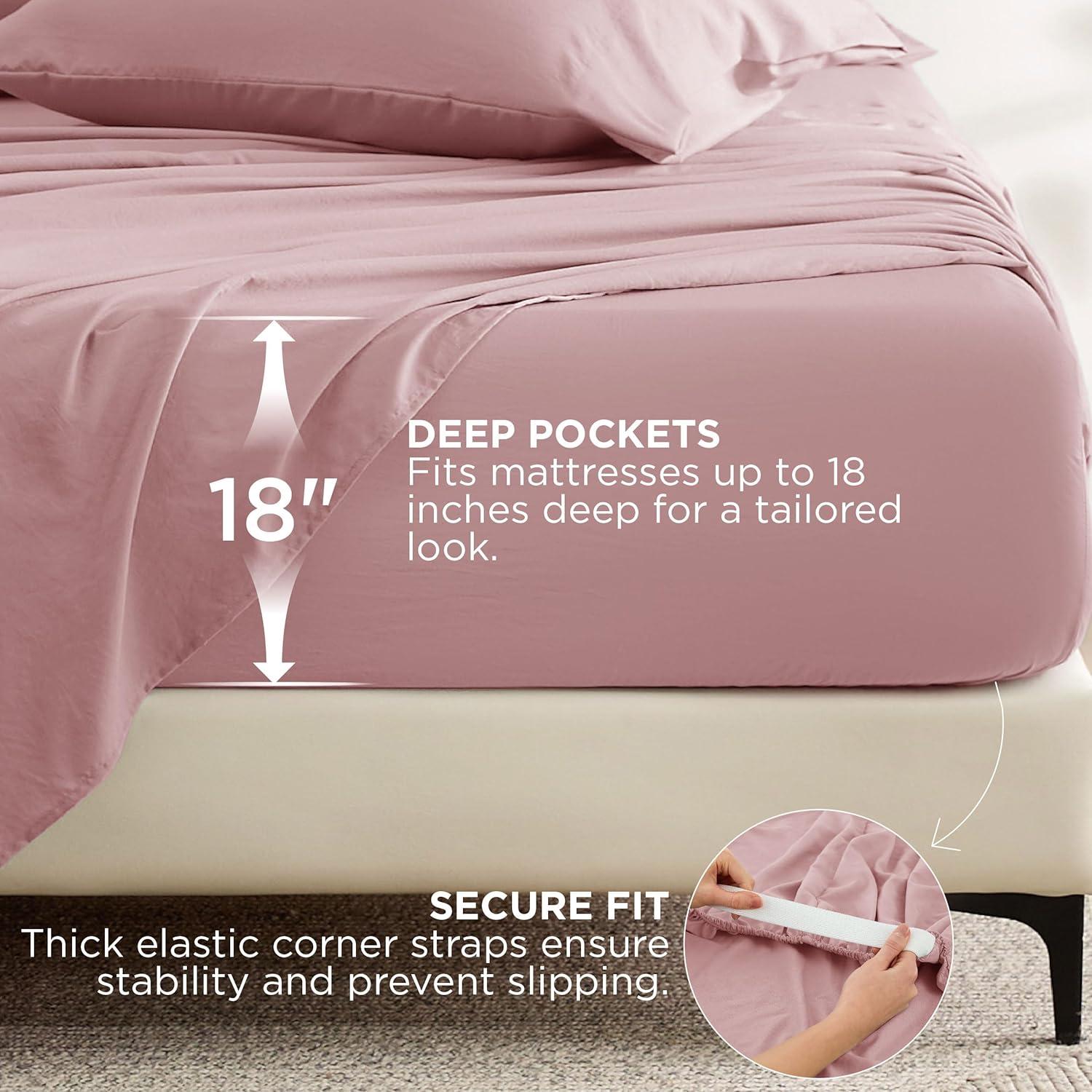 imageBedsure Deep Pocket Queen Sheets  6 Piece Prewashed UltraSoft Queen Sheet Set Fits Mattresses Up to 18 Inches Thick Breathable ampamp Secure Fit Hotel Luxury Bedding Light PinkLinen
