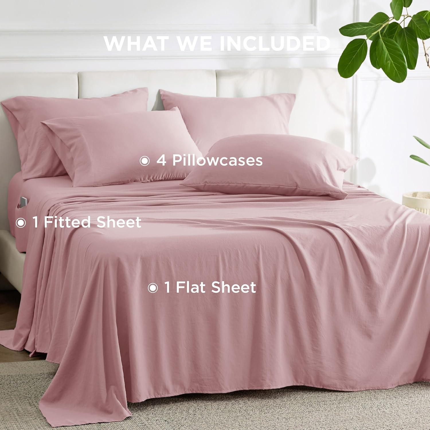 Bedsure Deep Pocket Queen Sheets – 6 Piece, Prewashed Ultra-Soft Queen Sheet Set, Fits Mattresses Up to 18 Inches Thick, Breathable & Secure Fit, Hotel Luxury Bedding, Light Pink(Linen)