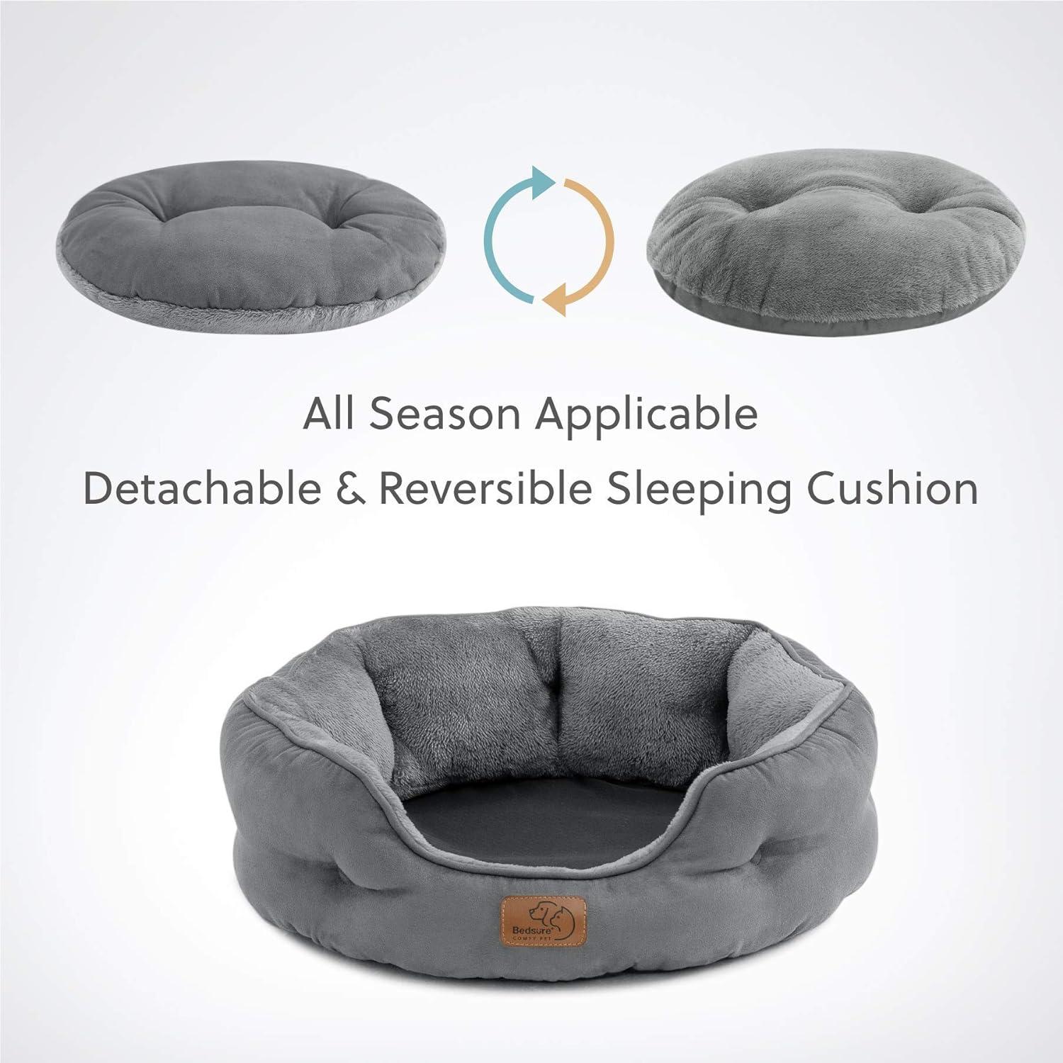 Bedsure Dog Bed for Medium Dogs - Round Washable Medium Pet Bed, Anti-Slip Donut Fluffy Plush Indoor Fur Cat Bed, 28 inches, Camel(Grey)